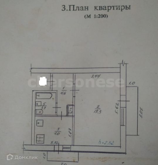 Высота потолков 2.52 м