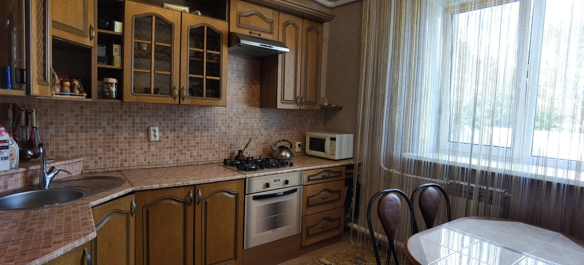 ХОРОШИЙ РЕМОНТ. На полу ламинат, высокие натяжные потолки 2.7 метров с точечным освещением и красивыми люстрами, двери из массива дуба. Пластиковые окна, биметаллические радиаторы. Сан. узел раздельный, в плитке.
