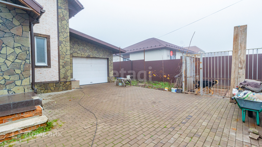 Двор благоустроен, уложен плиткой. К дому пристроен гараж на одну машину. На участке высажены молодые плодовые деревья, разбиты цветники. За домом высажена плантация вкуснейшей клубники.