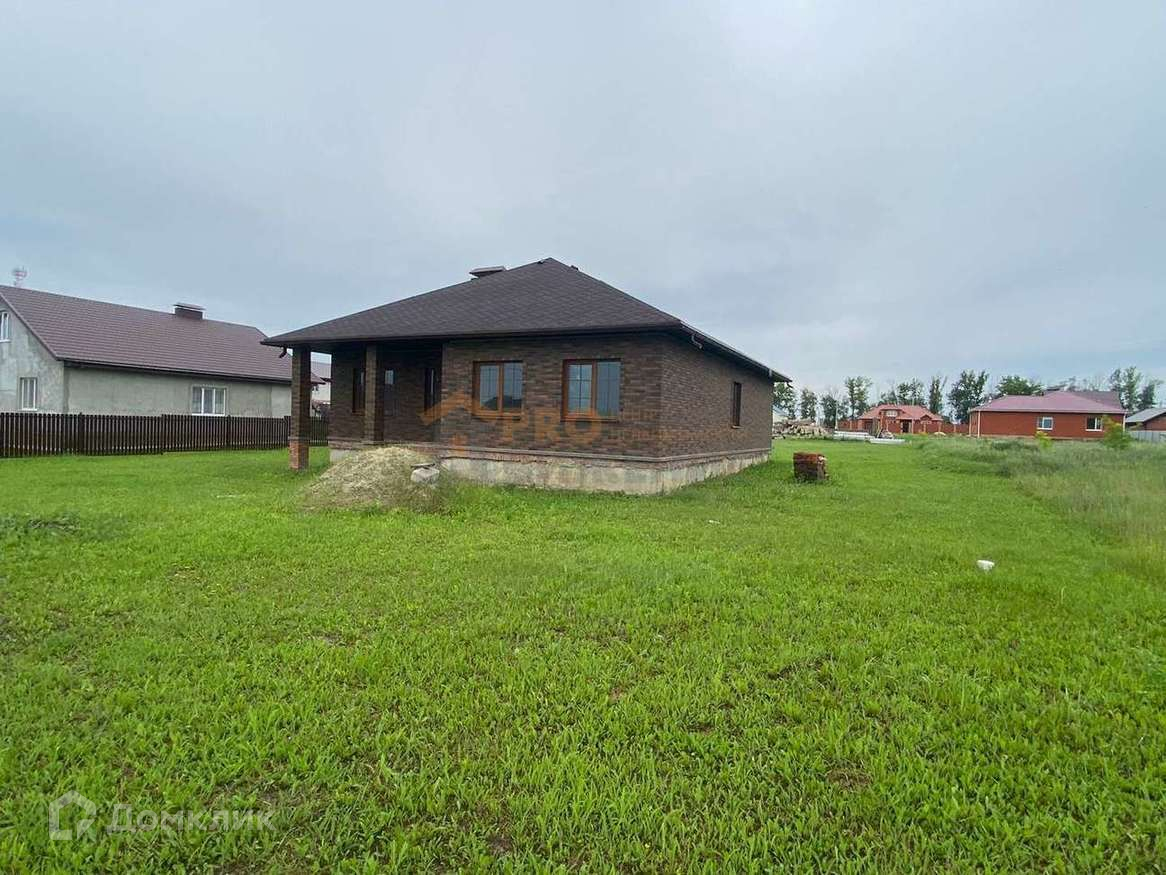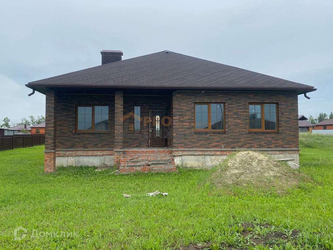 Одноэтажный дом 126м2 на участке 15 соток. Стены: керамзитоблок+утеплитель+облицовочный кирпич (баварская кладка). Все окна ПВХ, в три стекла, ламинированные, с перегородками. Крыша-мягкая кровля. Добротная, не дешевая входная дверь. Перекрытие между первым этажом и крышей плиты ЖБК. В доме залиты чистовые полы (система теплый пол), сделана разводка водоснабжения и выходы под батареи. Стены отштукатурены и отшпаклеваны. Свет в доме готов на 100%. Во дворе установлен септик.