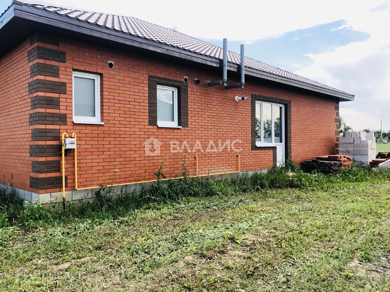 Продаётся одноэтажный  дом на участке 15  соток в 15 минутах езды до города. Дом выполнен из газоблока .  Отделан декоративным кирпичом., Фундамент ленточный.   Газ, вода центральная, электричество заведены в дому, канализация: септик. Крыша выполнена из металлочерепиц, чердак утеплен.