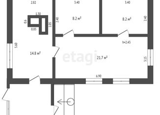 Общая площадь: 58.6 м2
