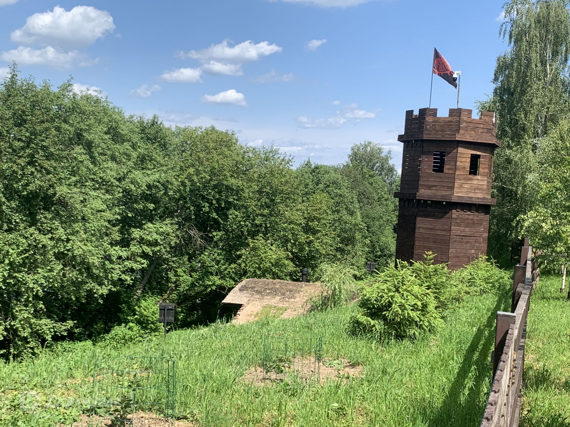 Участок выровнен но с наклоном в сторону реки, выход к реке в 50 м от дома, в 130 м находится сделанная под древнюю Русь скульптуры и горки спускающиеся в речку, зона отдыха с домиками, вся ухоженная и удивительно красивая, ширина речки 500 м а длина этой широкой глади 5 км, и дом расположен прям у самого широкого места, рыбак плещется прям у берега, редко увидишь такую дикую красоту и всеголишь в 5 км от г. Истра, в 7 км ж/д старнция Истра.