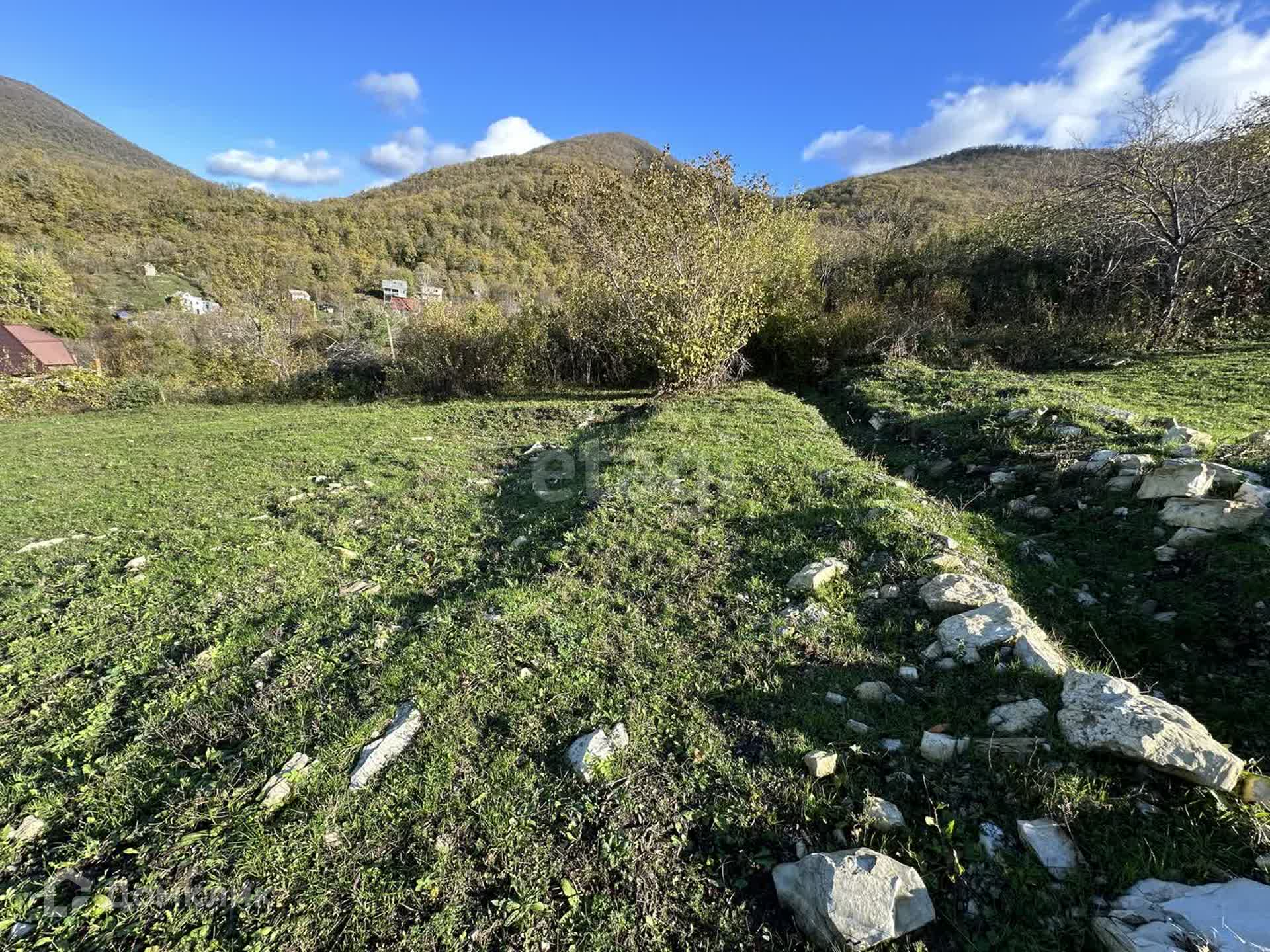 Небольшой уклон на участке позволяет создать уникальный планировочный проект с минимальными финансовыми затратами. По границе участка находится электрический столб, а рядом протекает горный ручей, из которого можно использовать техническую воду для приусадебного участка.