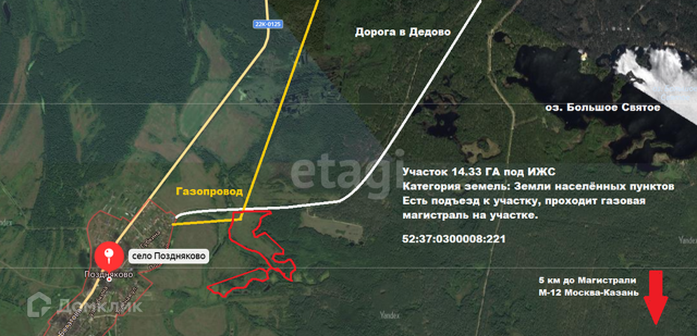 Продаётся земельный участок 14300 м2 (14.3 га) в Навашинском районе вблизи села Поздняково.