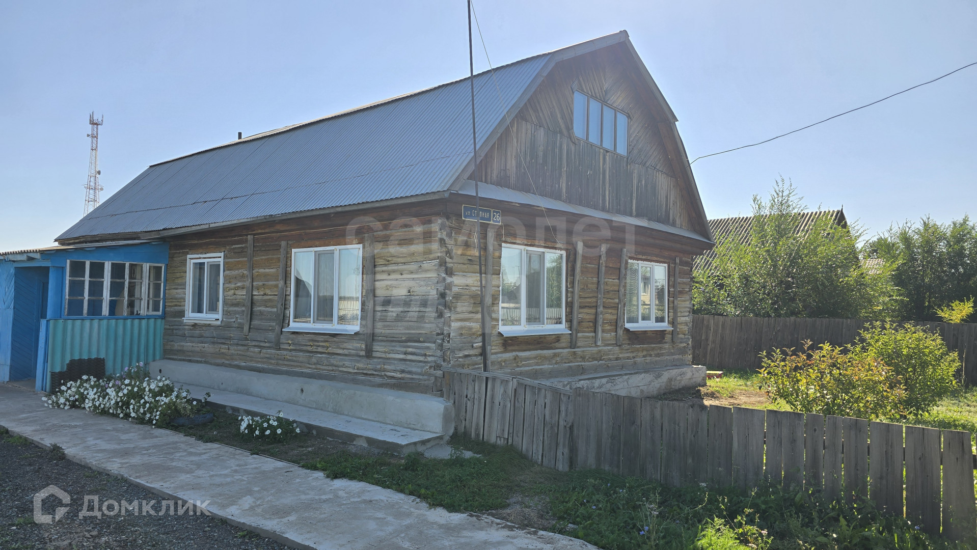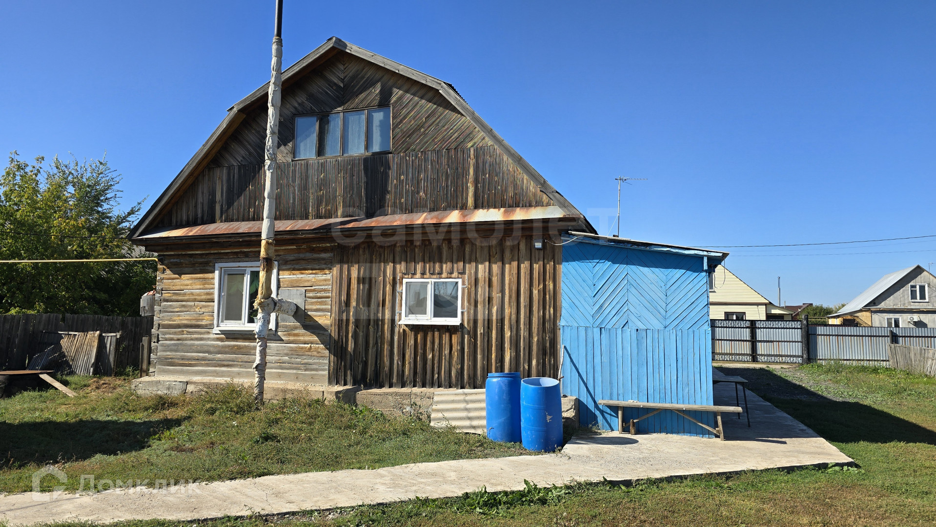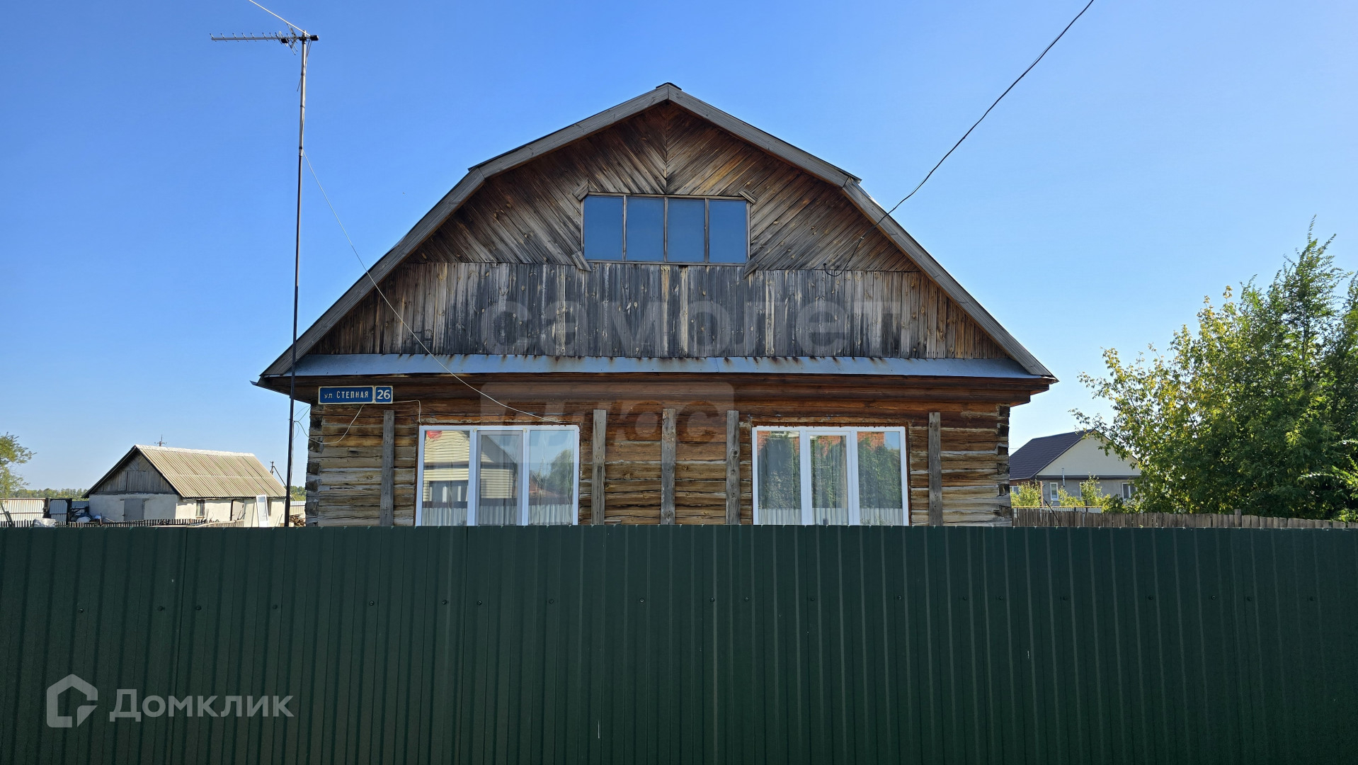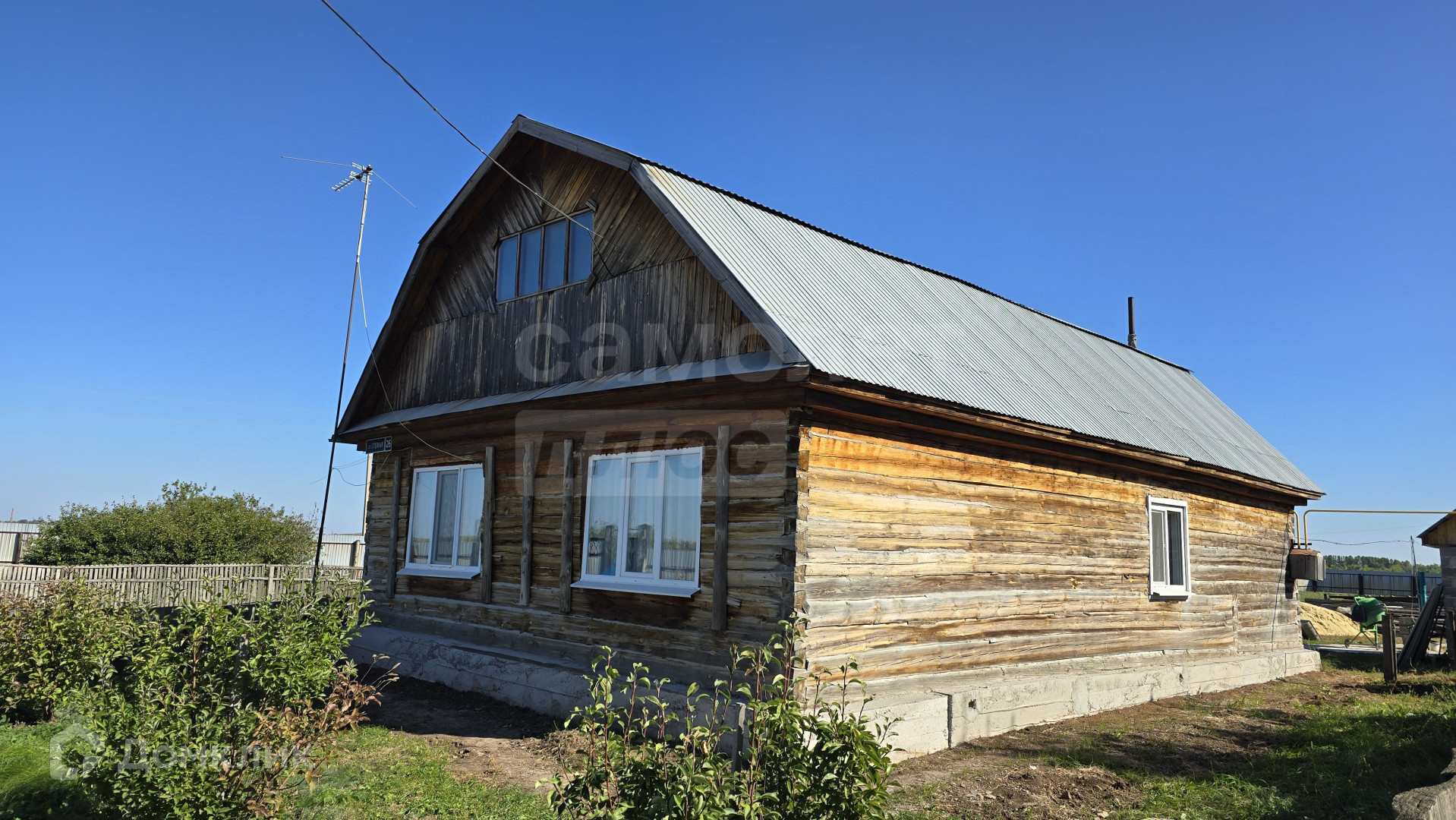 Дом построен из бруса, расположен на краю села вблизи озера. Огорожен забором из профлиста.