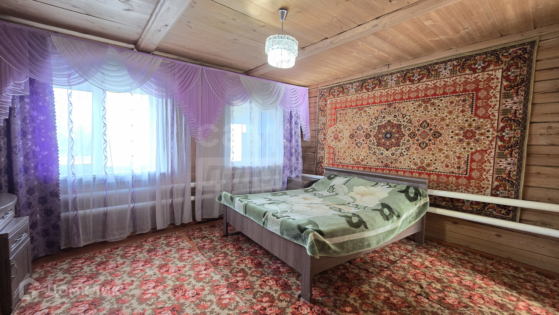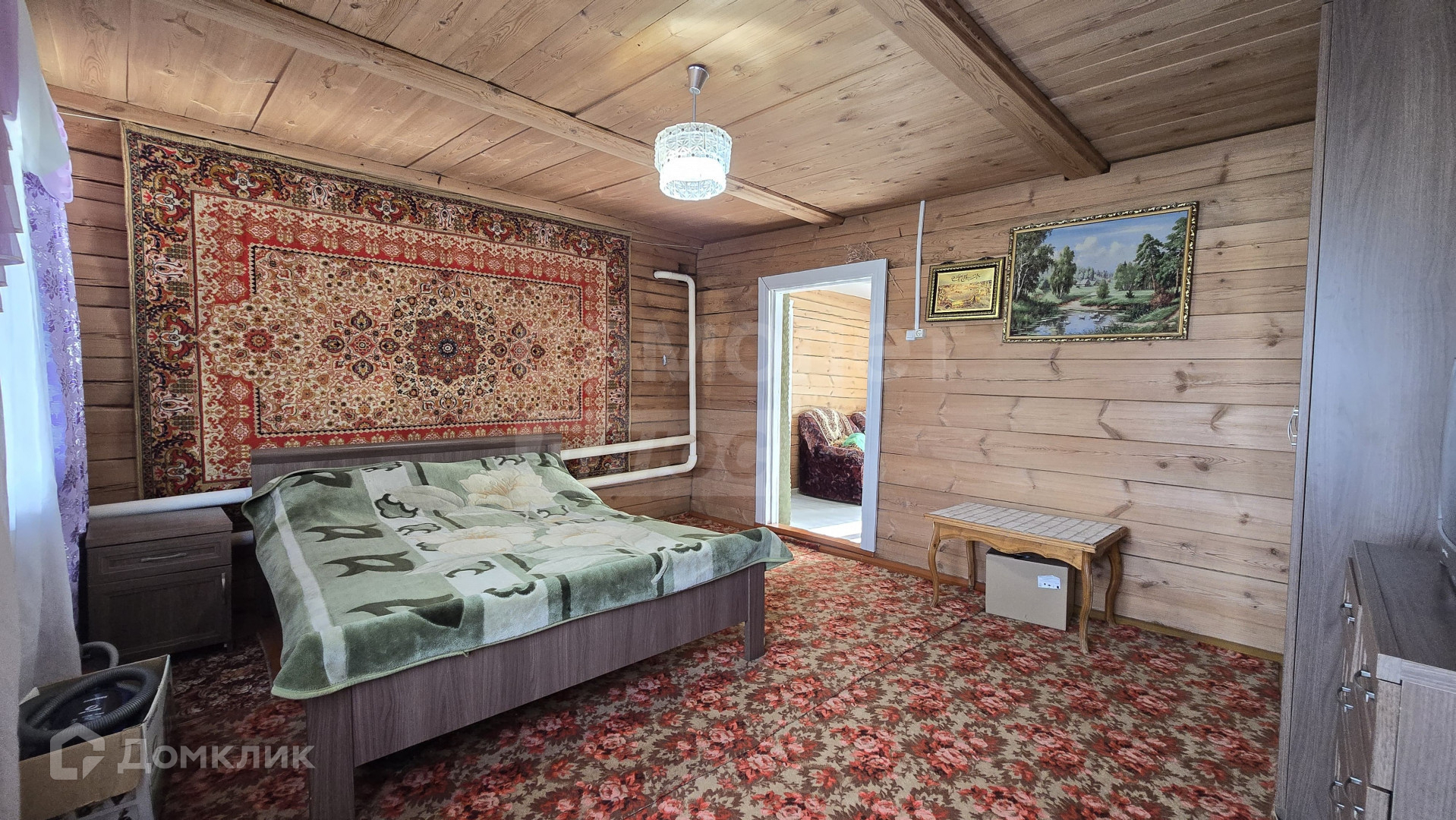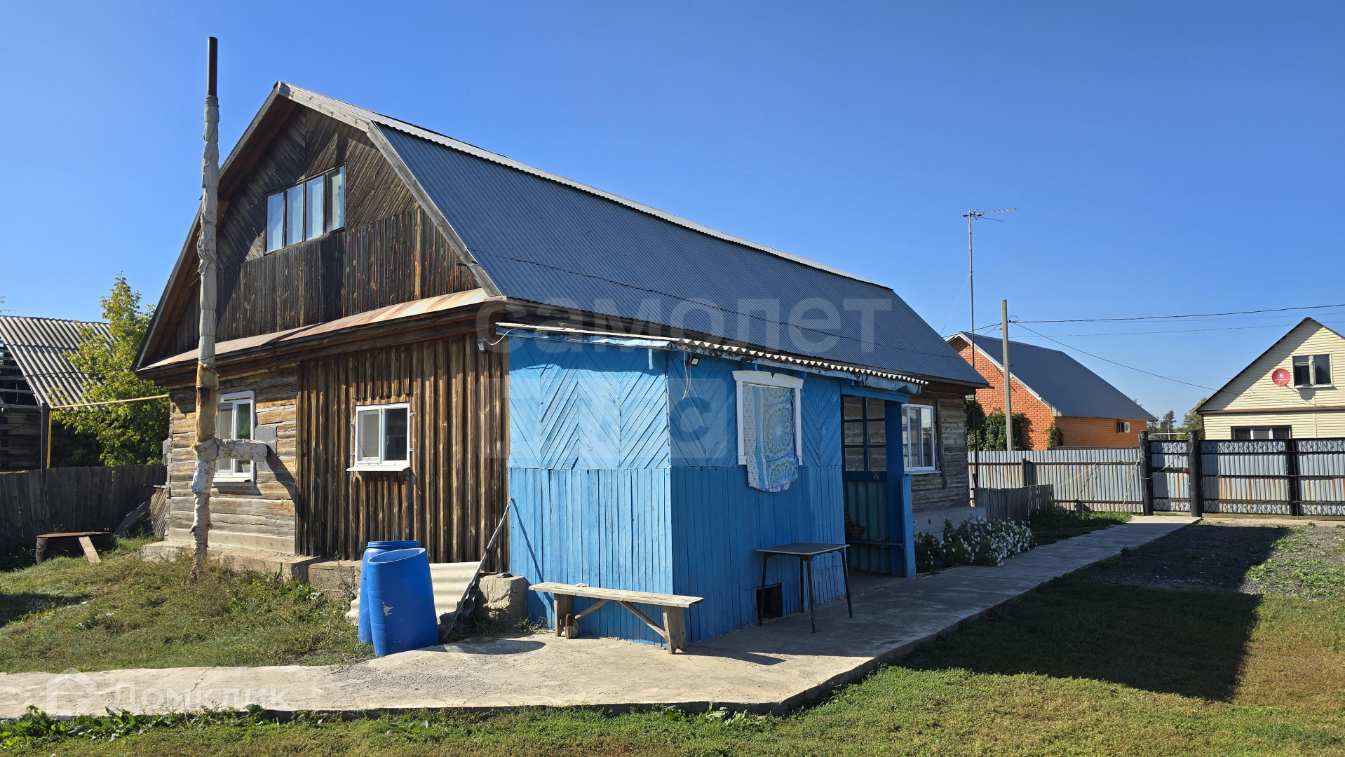 Дом построен из бруса, расположен на краю села вблизи озера. Огорожен забором из профлиста.