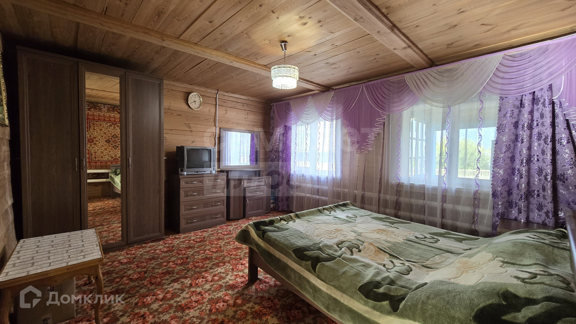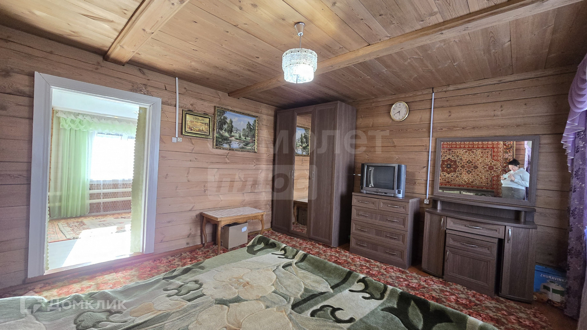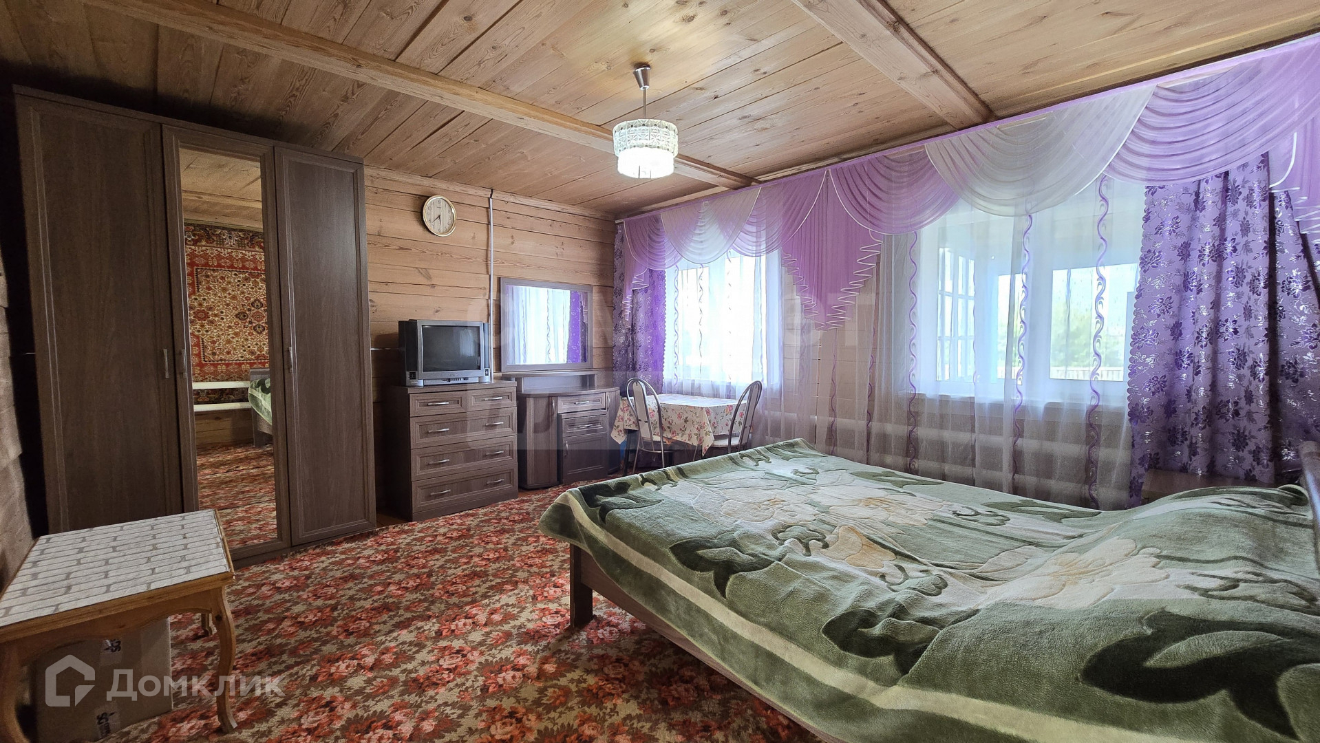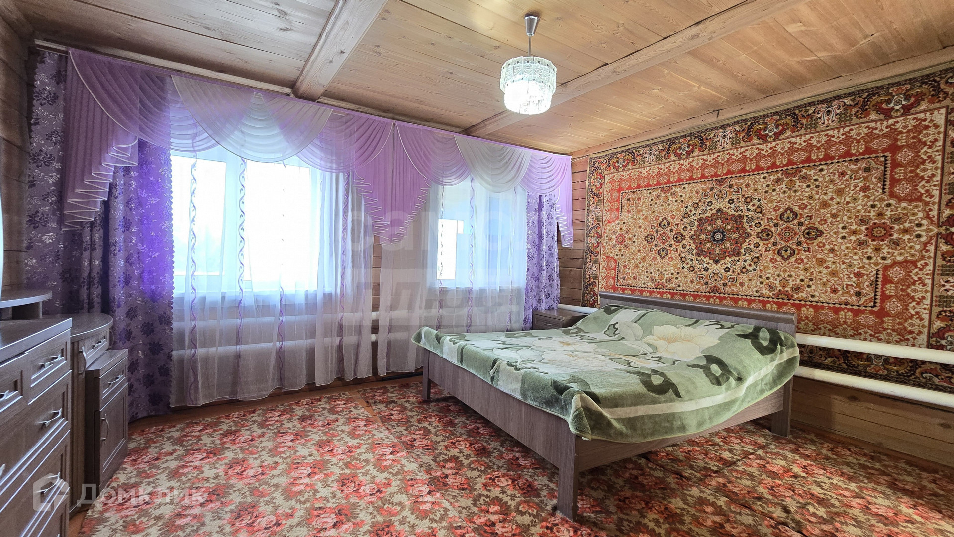 Дом построен из бруса, расположен на краю села вблизи озера. Огорожен забором из профлиста.