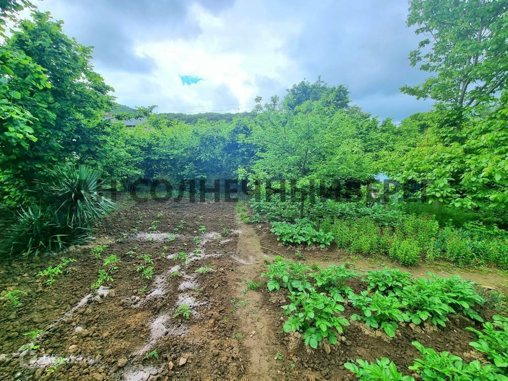 На участке сад, растут плодовые деревья: фундук, персик, хурма, грецкий орех и много другое.