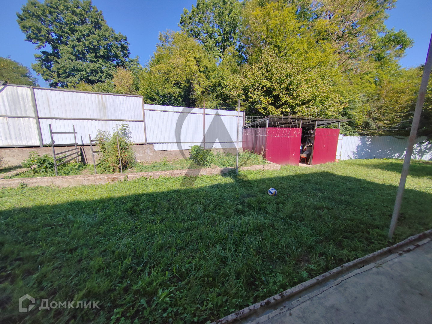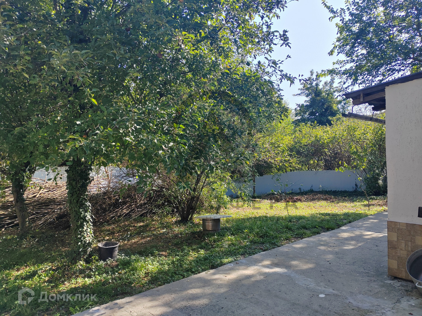 Участок просторный, забор по всему периметру, выдвижные ворота. На участке растут фруктовые  деревья, смородина.