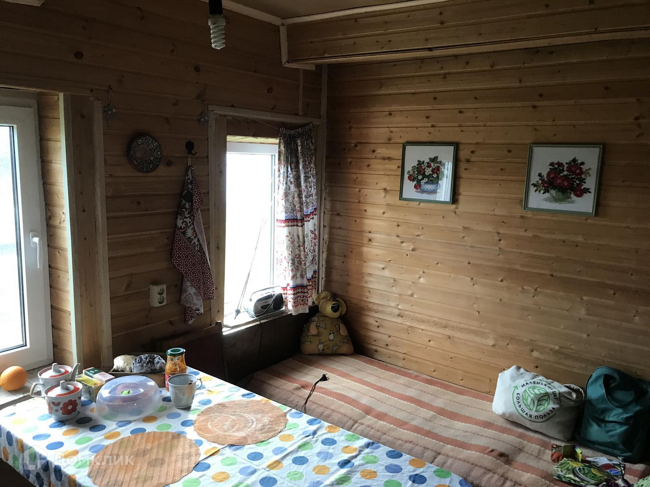 Дом из бревна со свежей отделкой; установлены пластиковые окна, поменяна кровля (профнастил).