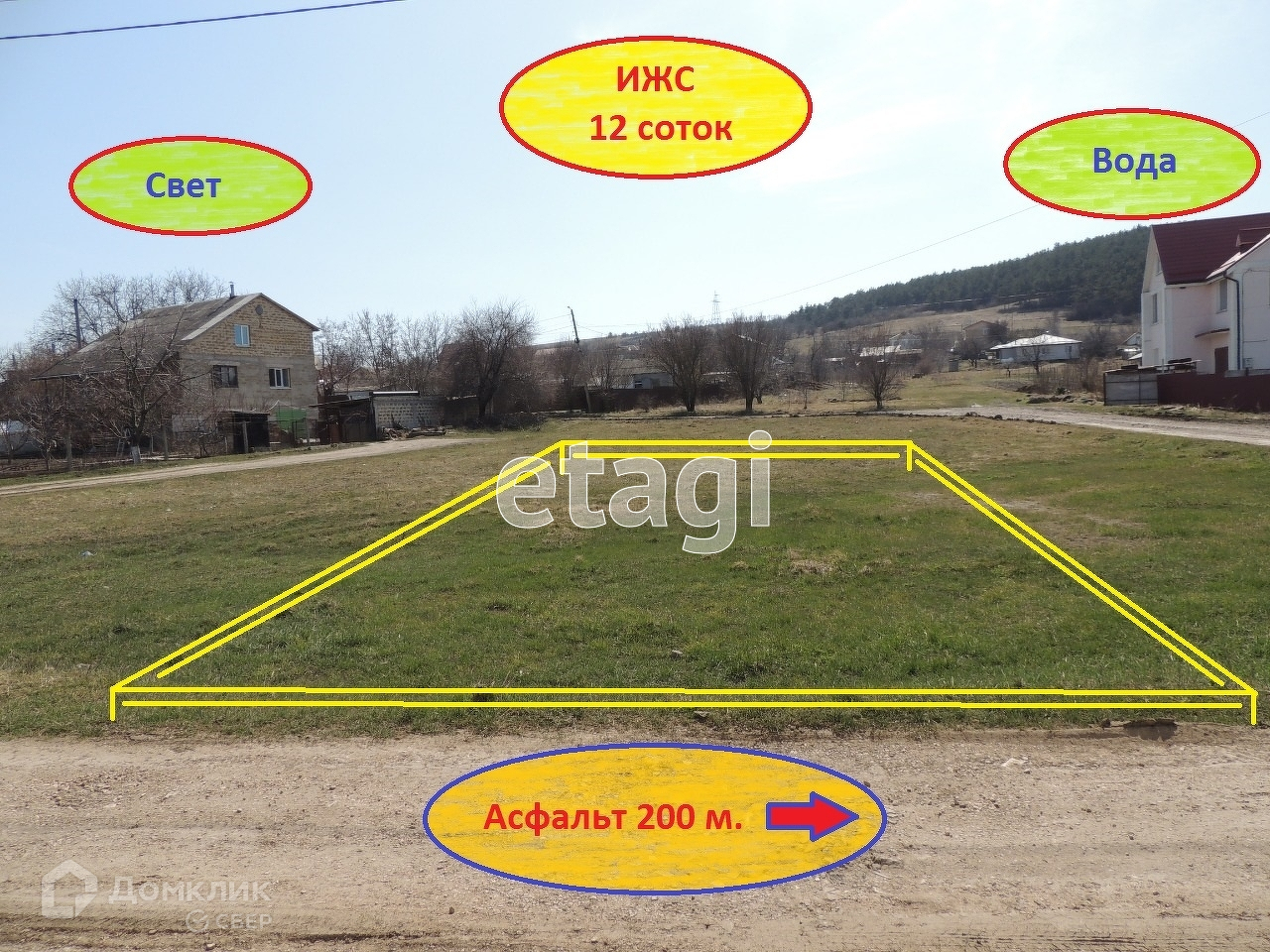 Есть возможность заведения коммуникаций на участок. Электр. столбы стоят вдоль улицы. Водоснабжение - скважина. Газификация села - уже прописана в ген. плане. По близости живут уже застроенные соседи.