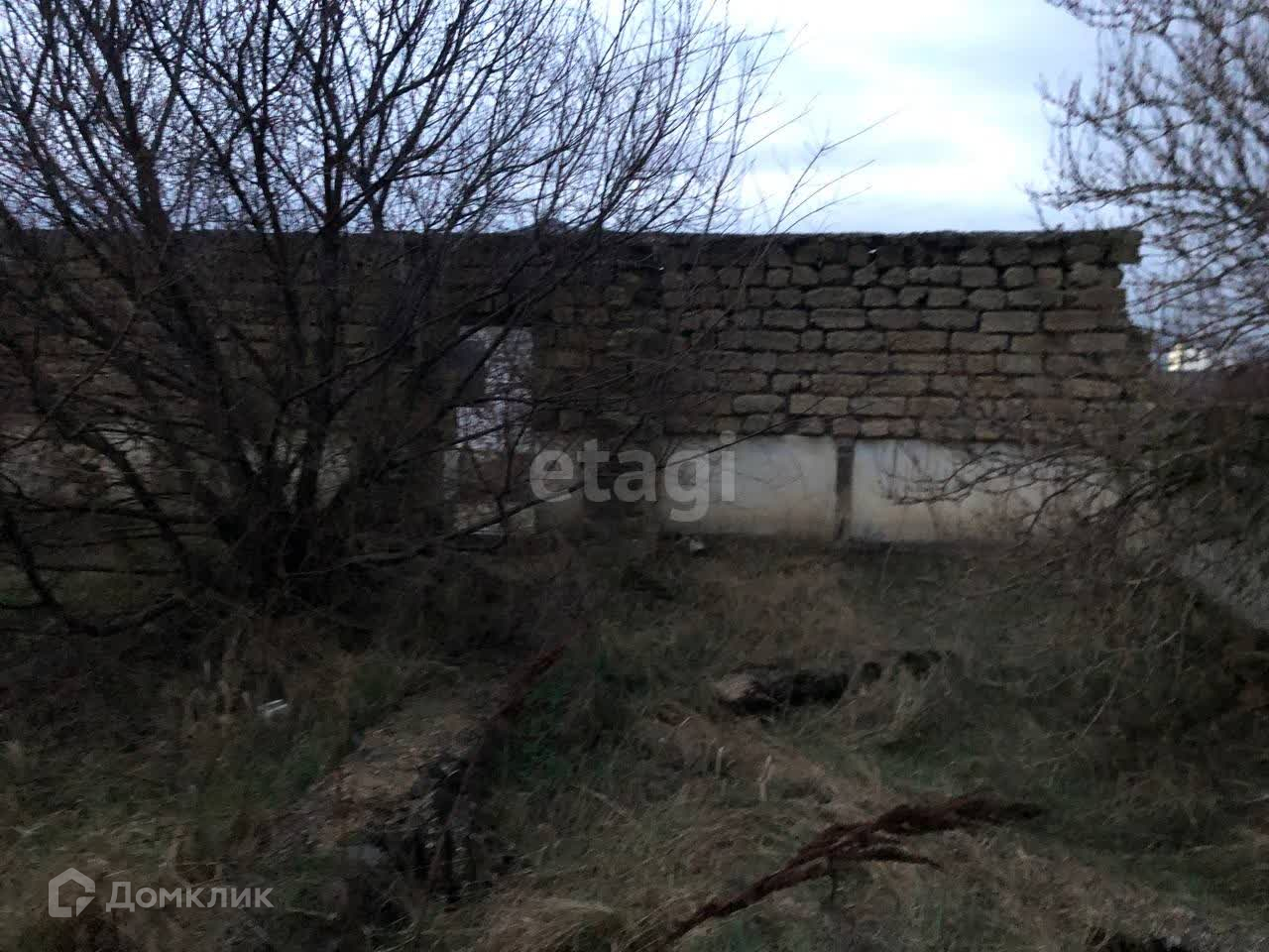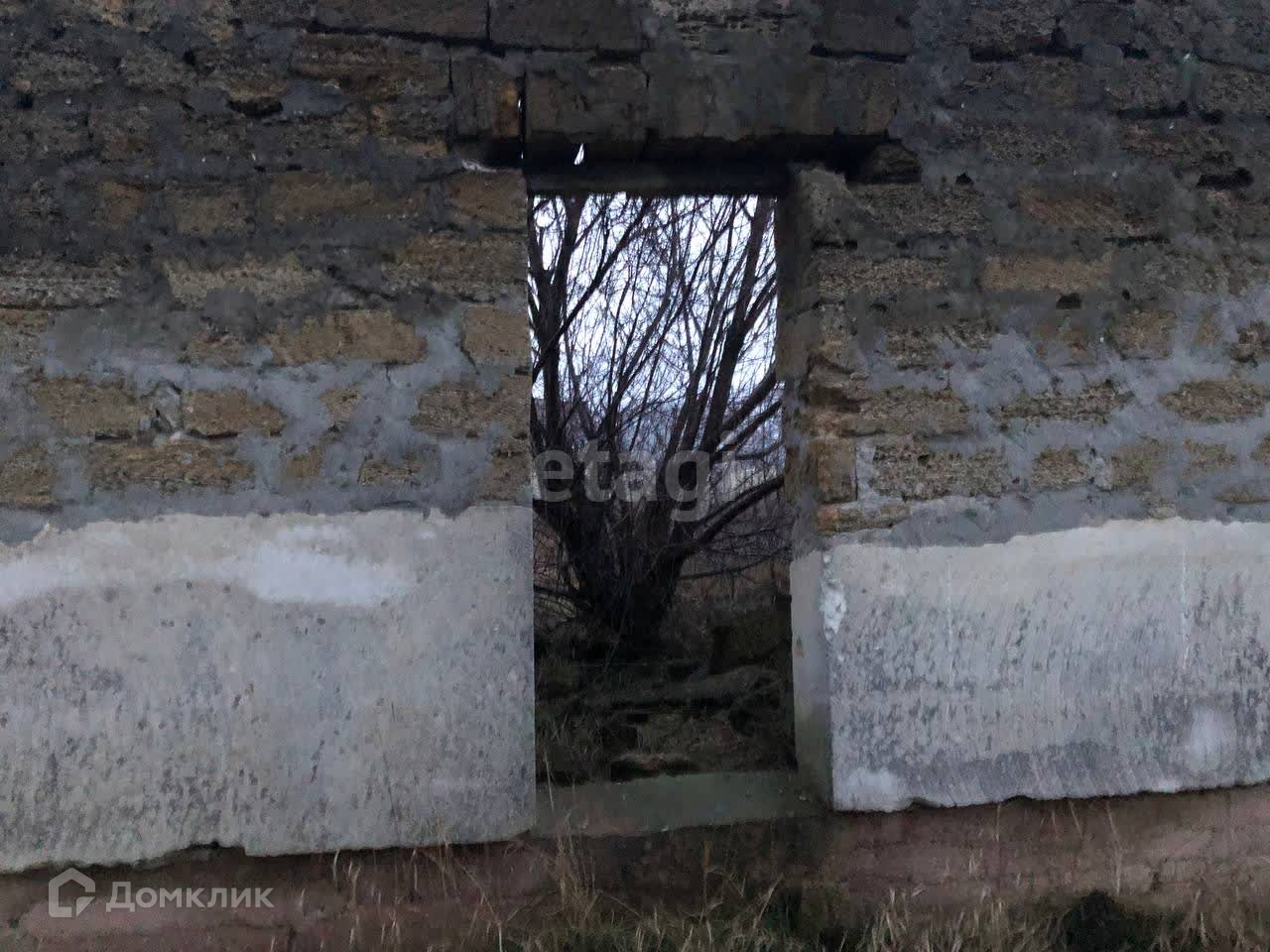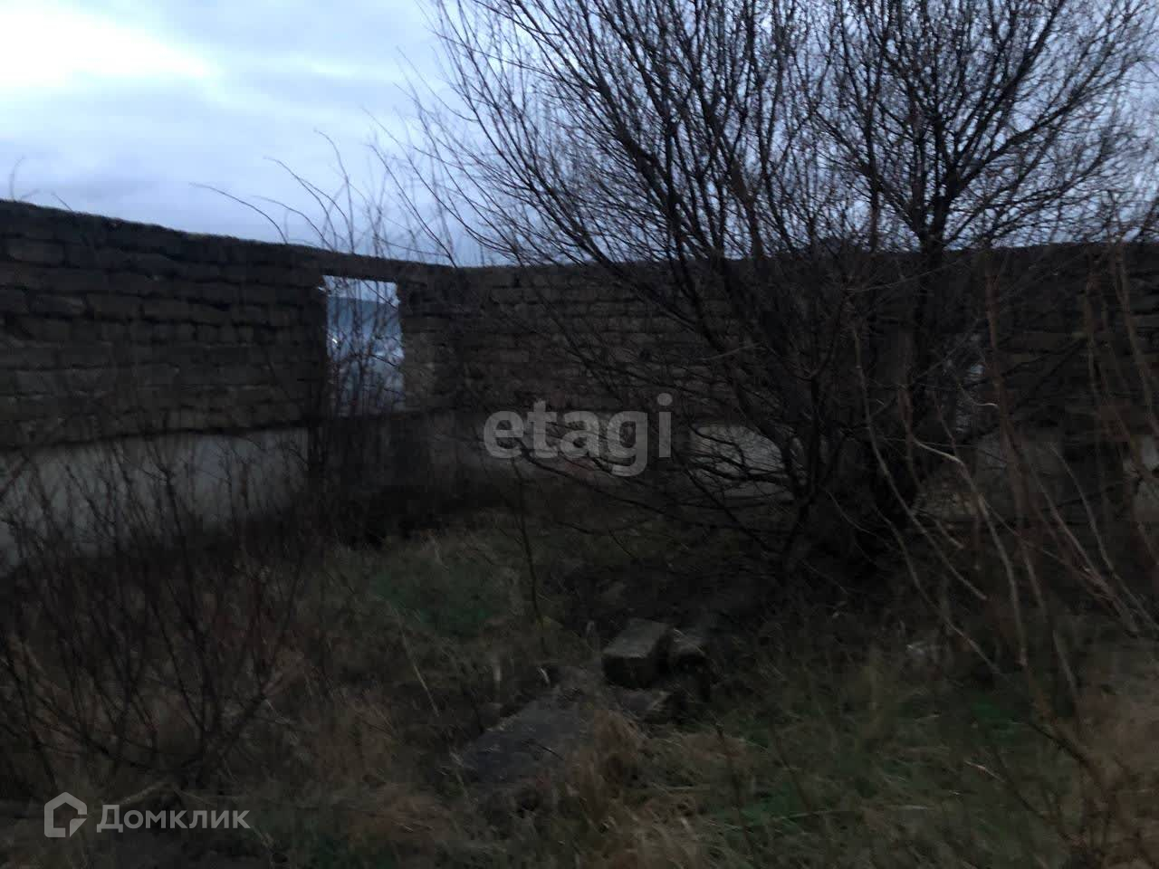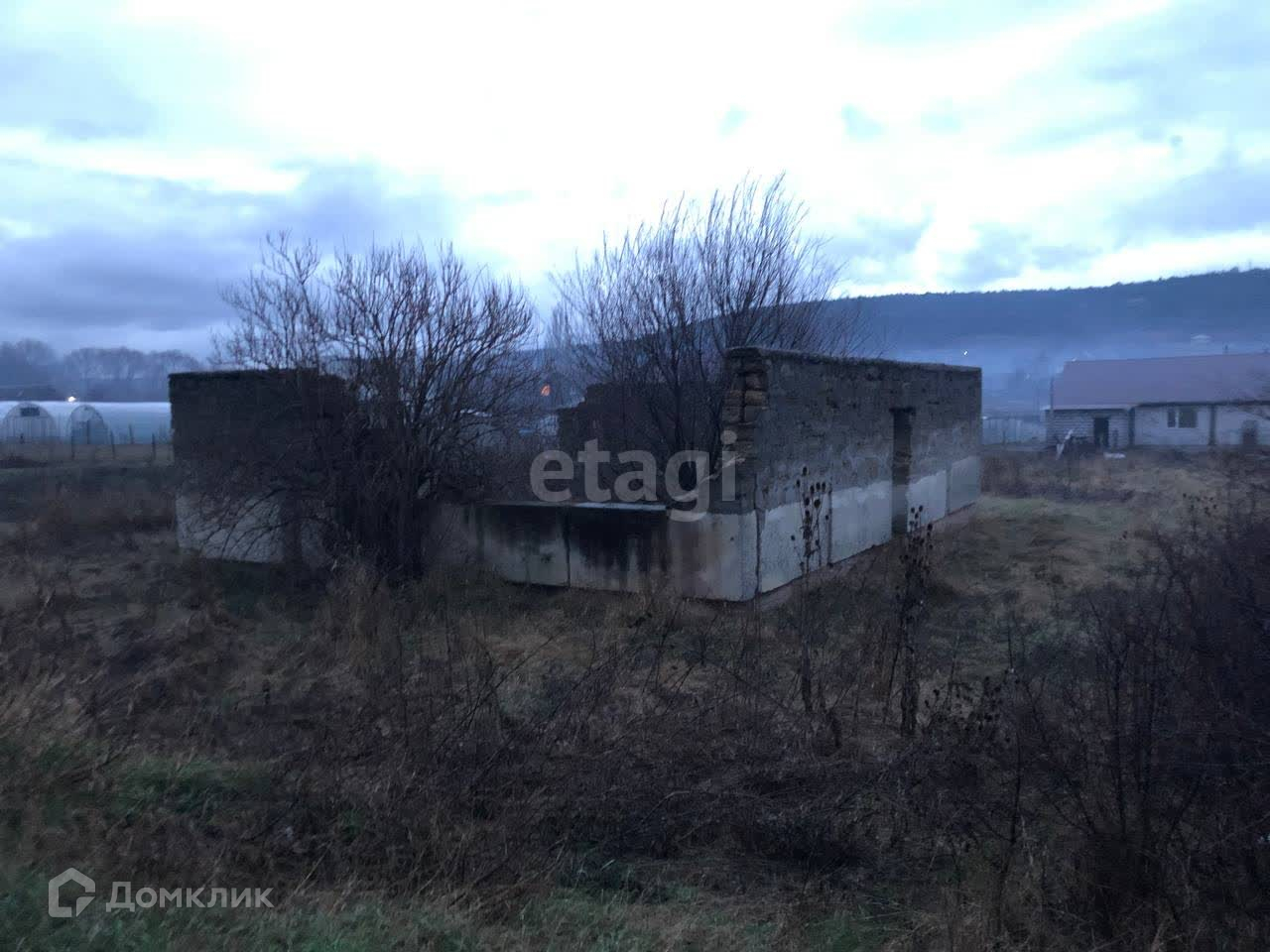На участке находится недостроенный дом (8х10 м): стены без крыши. Есть возможность подвести все коммуникации. Электричество, газ и централизованный водопровод проходят по границе участка. Рядом жилые дома.