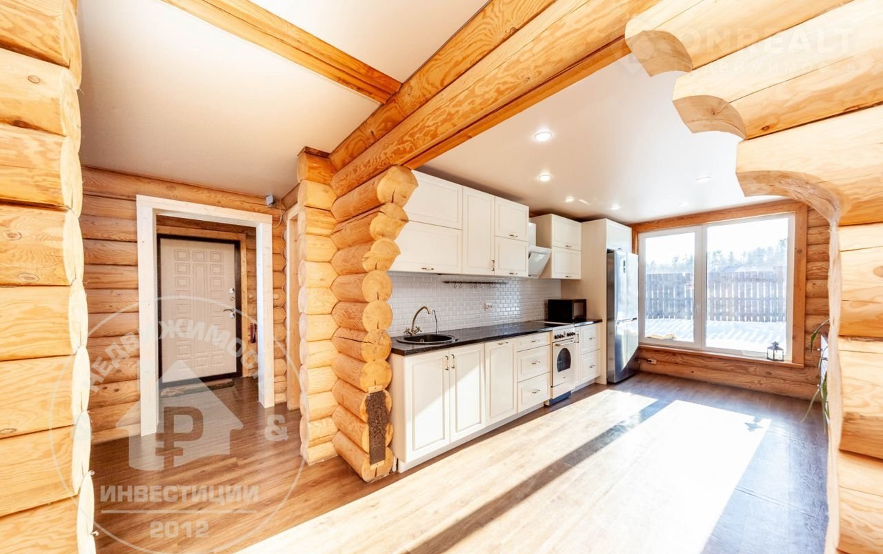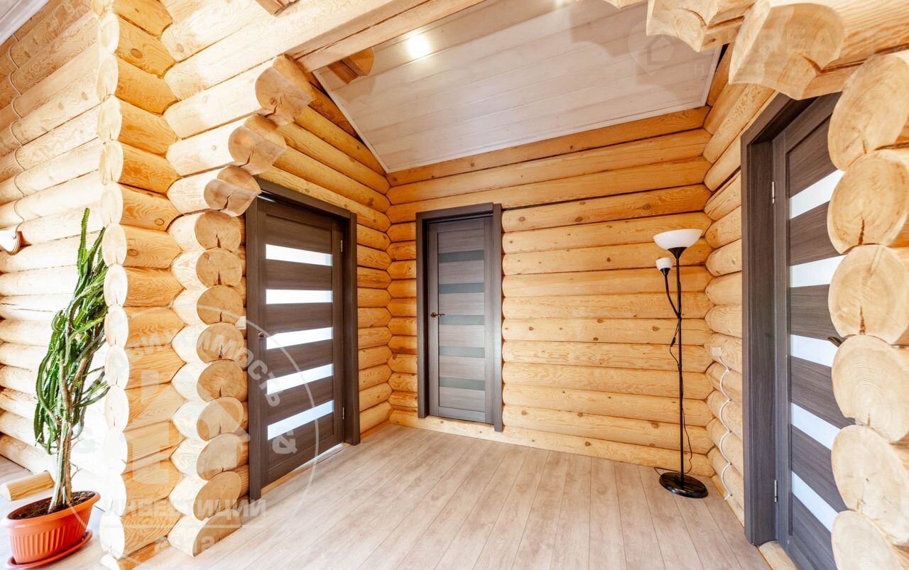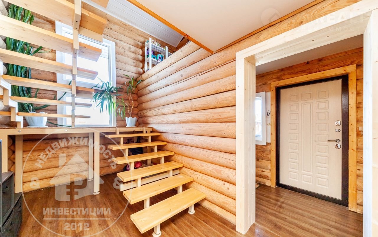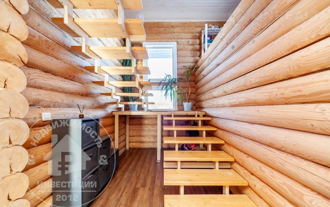 — Материал стен и перекрытий: рубленное бревно. Снаружи дом окрашен по скандинавской технологии.