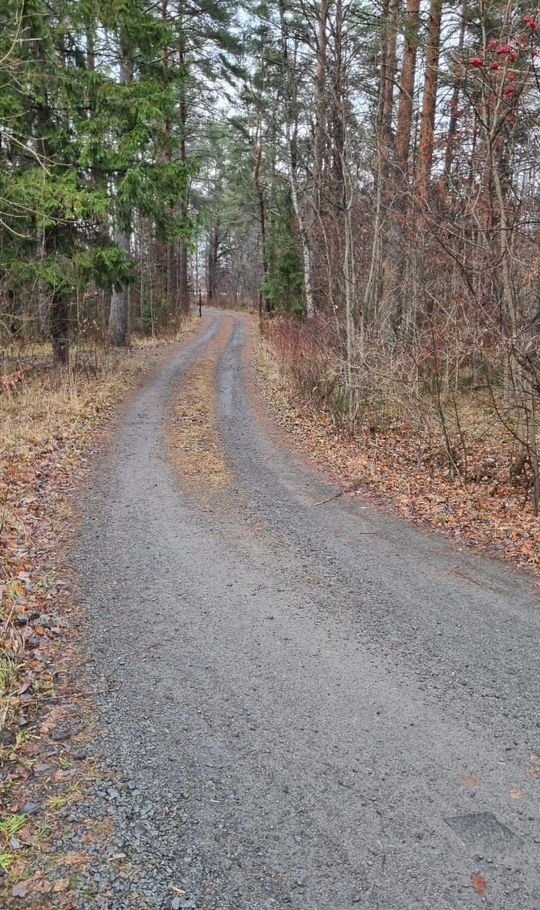 Дорога до участка, столб линии электропередач на углу участка.