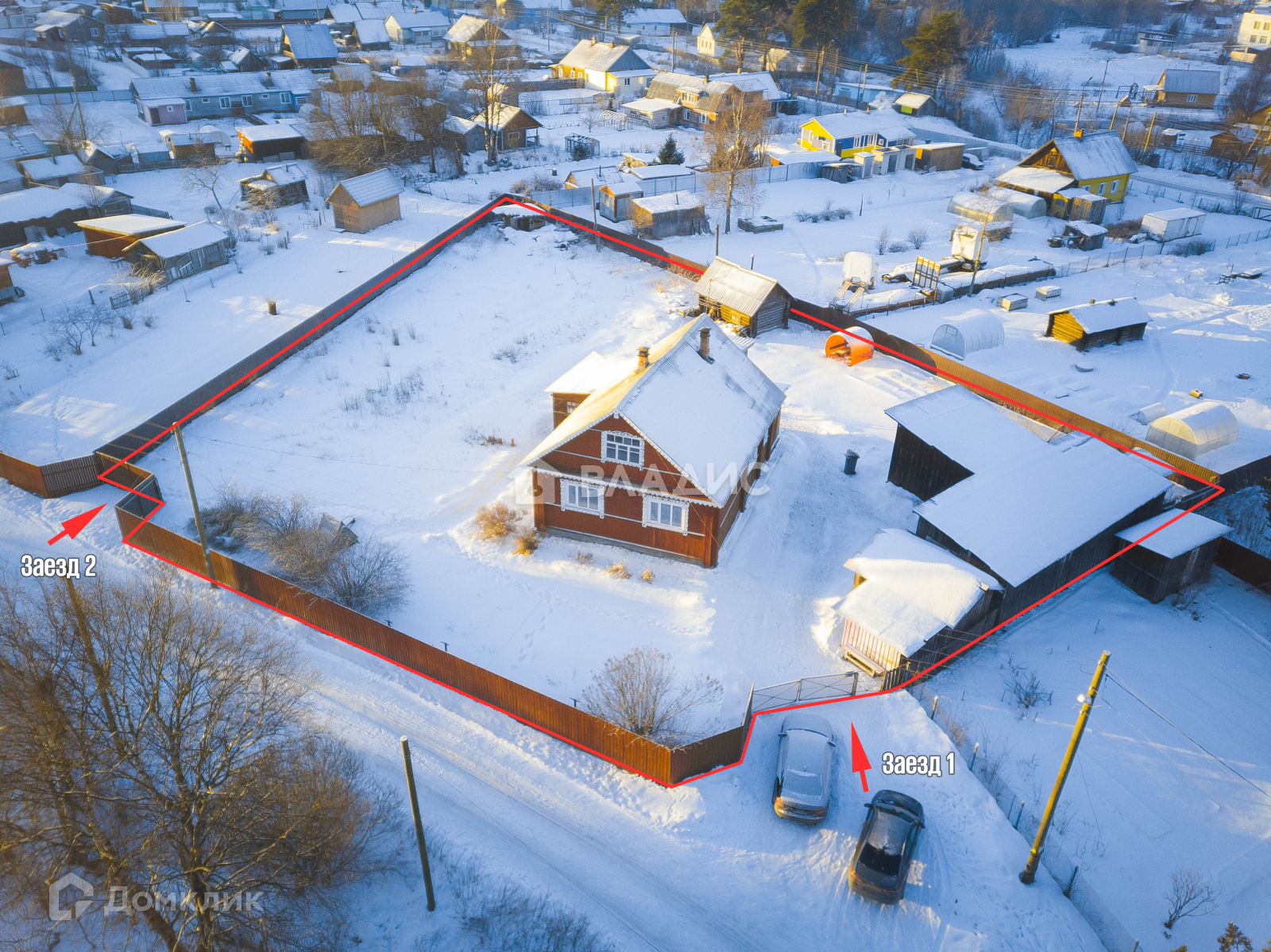 - Два въезда, ограждение по периметру металопрофиль;