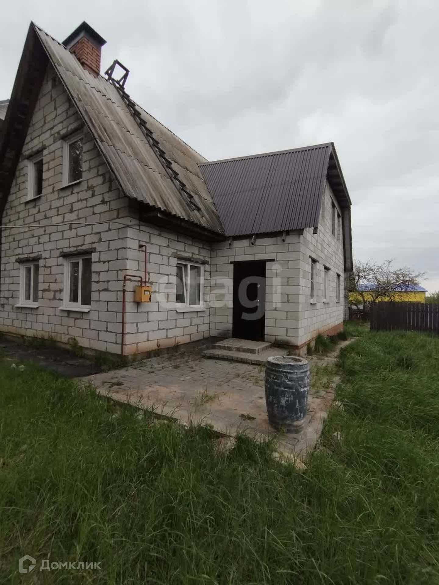 Дом со вторым этажом и большим бетонным подвалом.