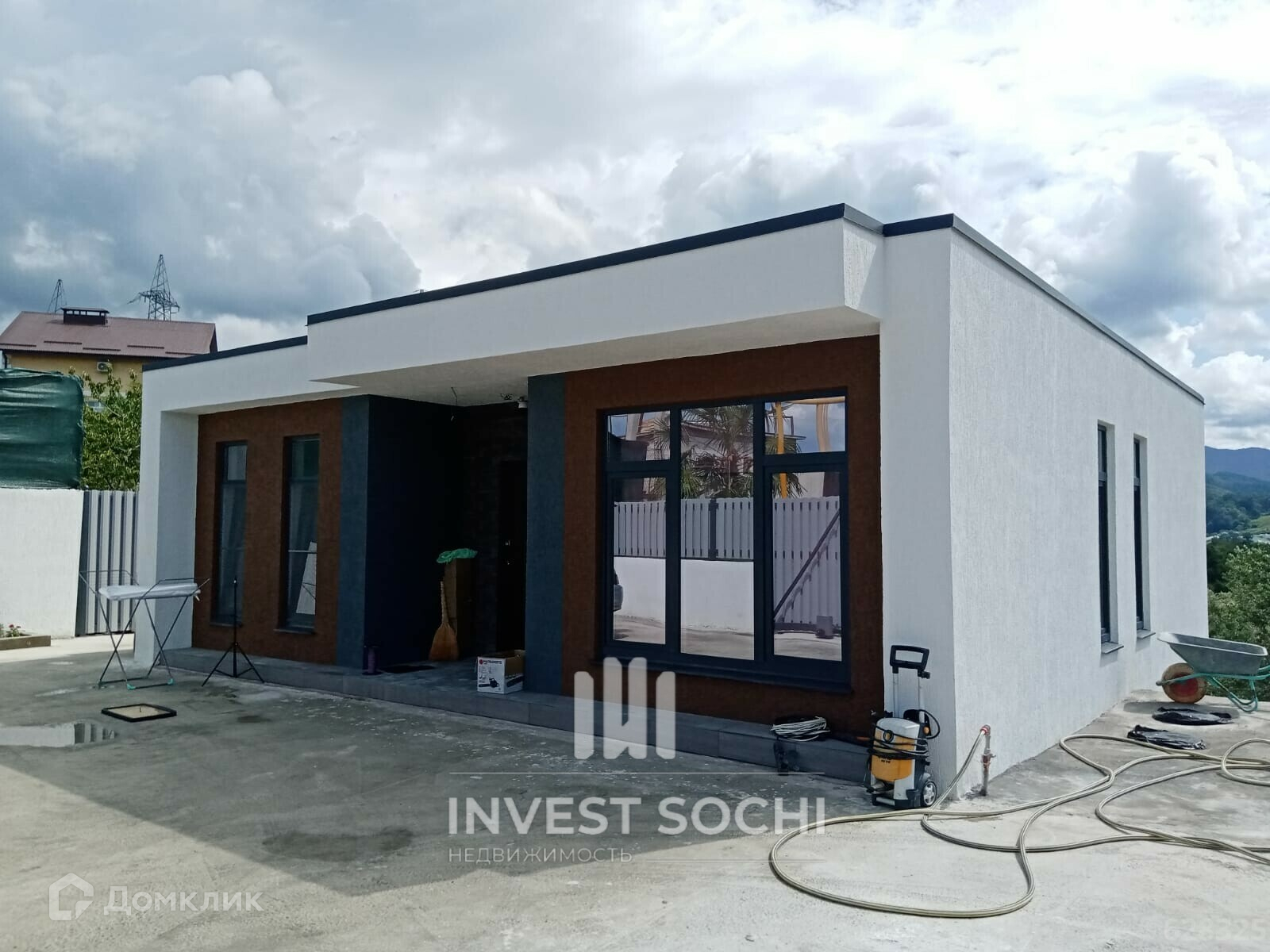 Дом в Детляжке между сочи и Лазаревским дом в стиле ХАЙТЭК на большом участке 10 соток есть не большой уклон . в доме частично сделан ремонт все документы в порядке готовы к продаже подробнее по телефону