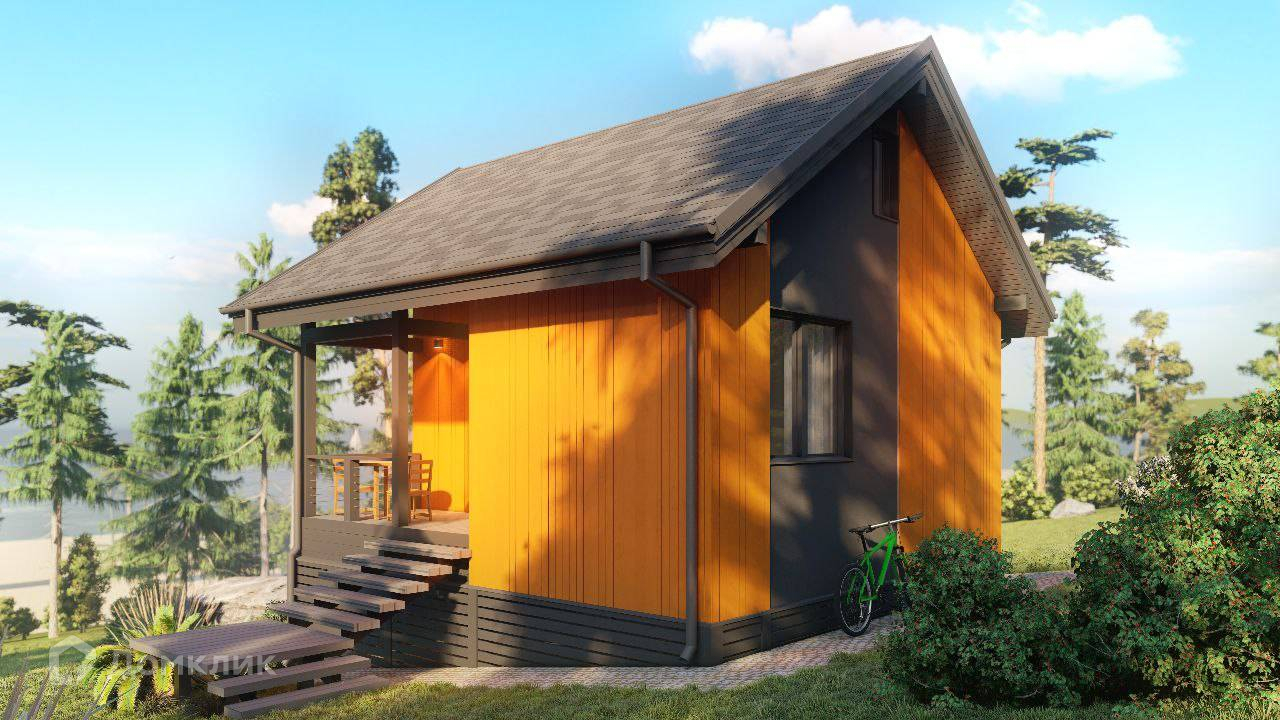 Крыша — двускатная с водоотводом, покрытие из гибкой черепицы.