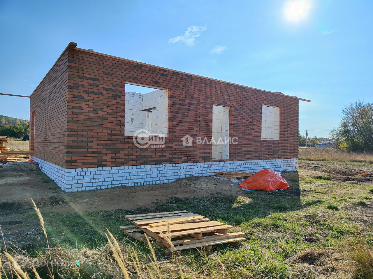 Строился  для себя. Ленточный фундамент глубиной 1,2м. Стены газосиликатный блок 30см, утеплитель, облицовочный кирпич. Крыша металлочерепица, утеплена. Черновая стяжка.