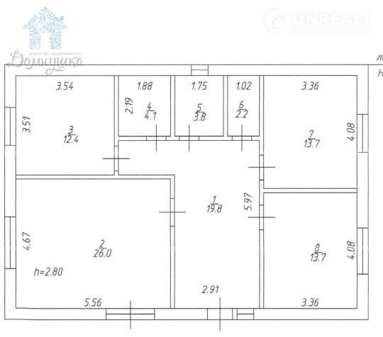 В доме три комнаты 14, 14 и 13 кв.м. Кухня гостинная 26 кв.м. с выходом на террасу.