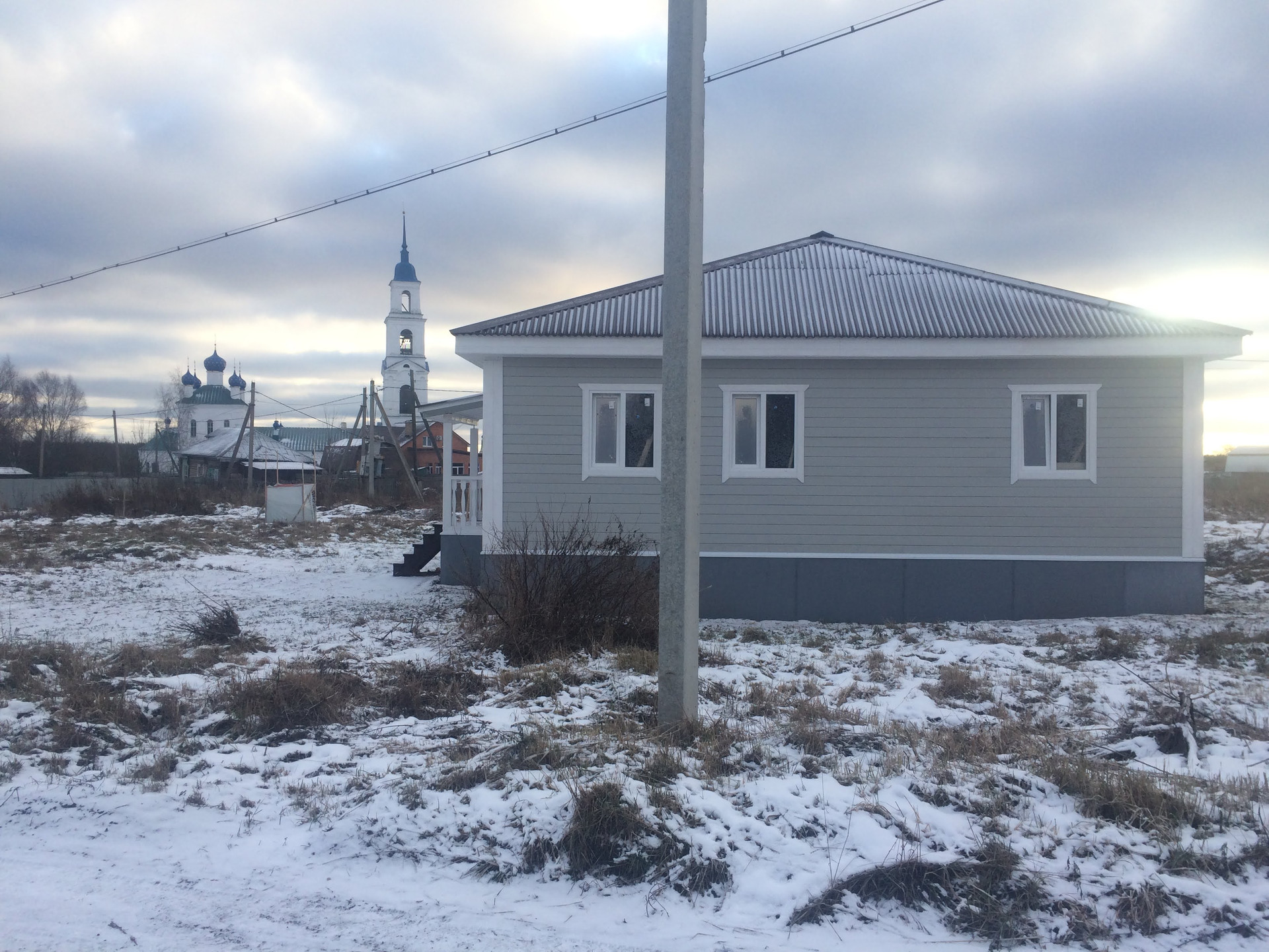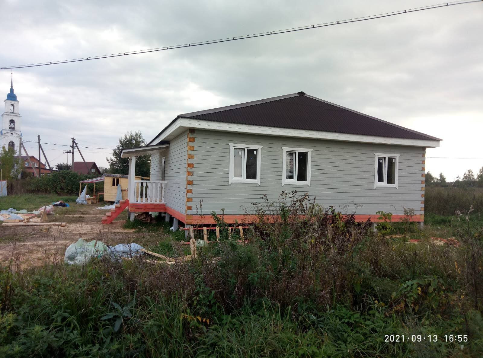 Новый одноэтажный (пятно застройки 11,5х11,5м) дом в самом центре села Диево-Городище,автобус 122,магазины, школа, дет.сад ,подъезд асфальт.