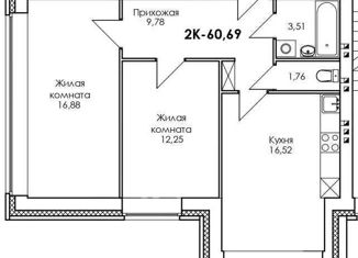 Общая площадь: 60.69 м2