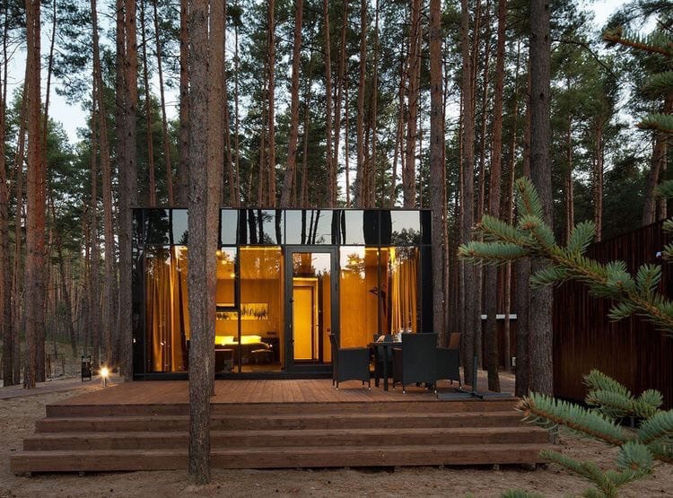 Расположение в лесу, на берегу озера