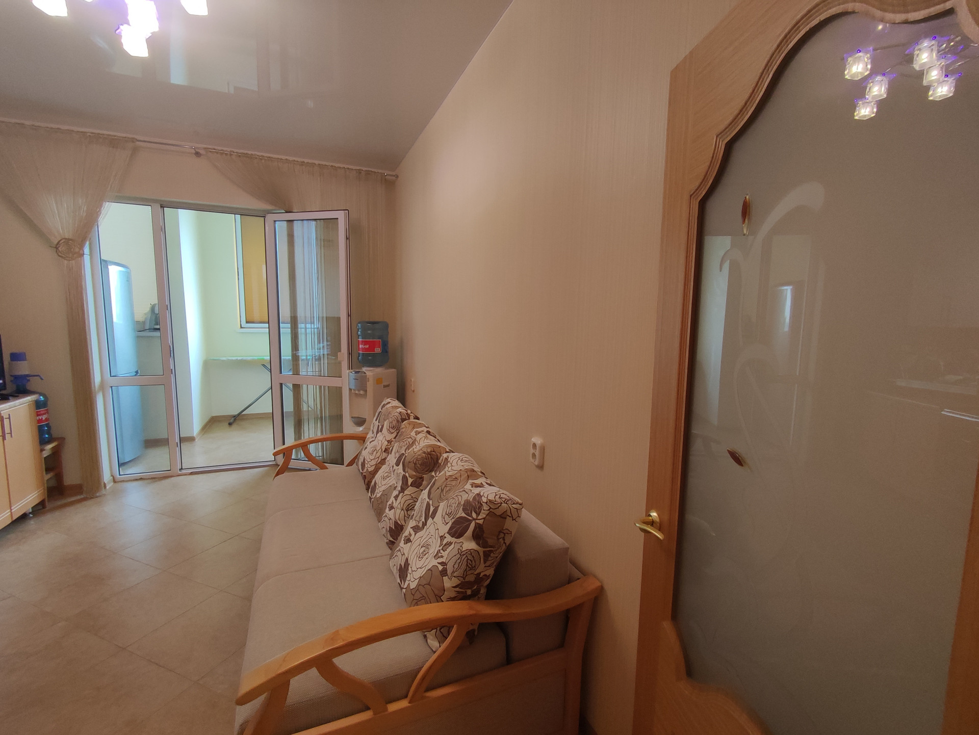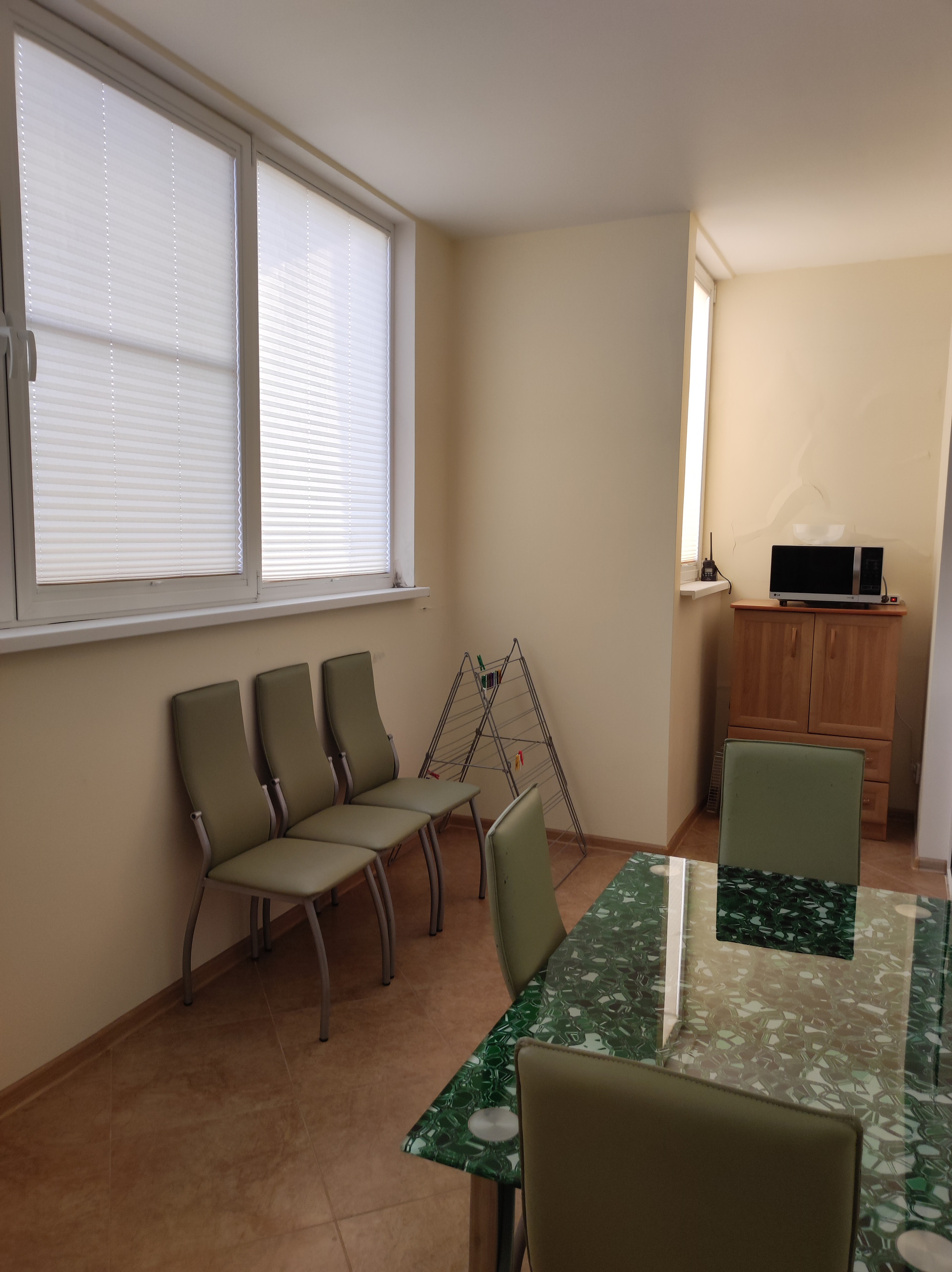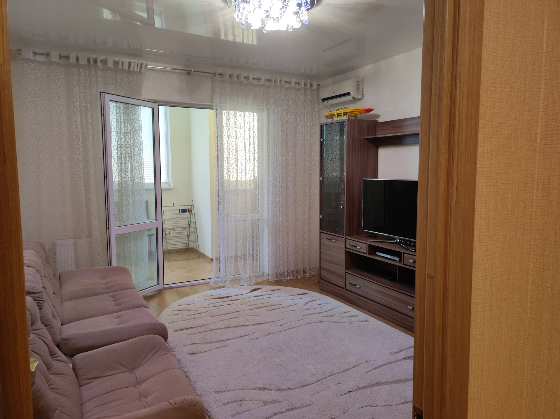 В квартире есть гардеробная, санузел совмещённый, балкон 12 м2, ремонт. Вся мебель остаётся. В шаговой доступности школа, детский сад, магазины,остановка общественного транспорта. До моря 15 минут идти, на машине 5 минут.