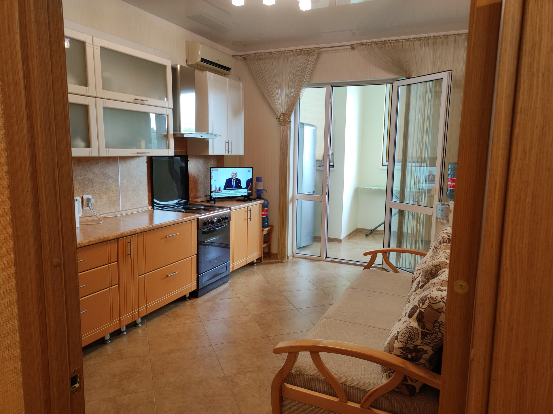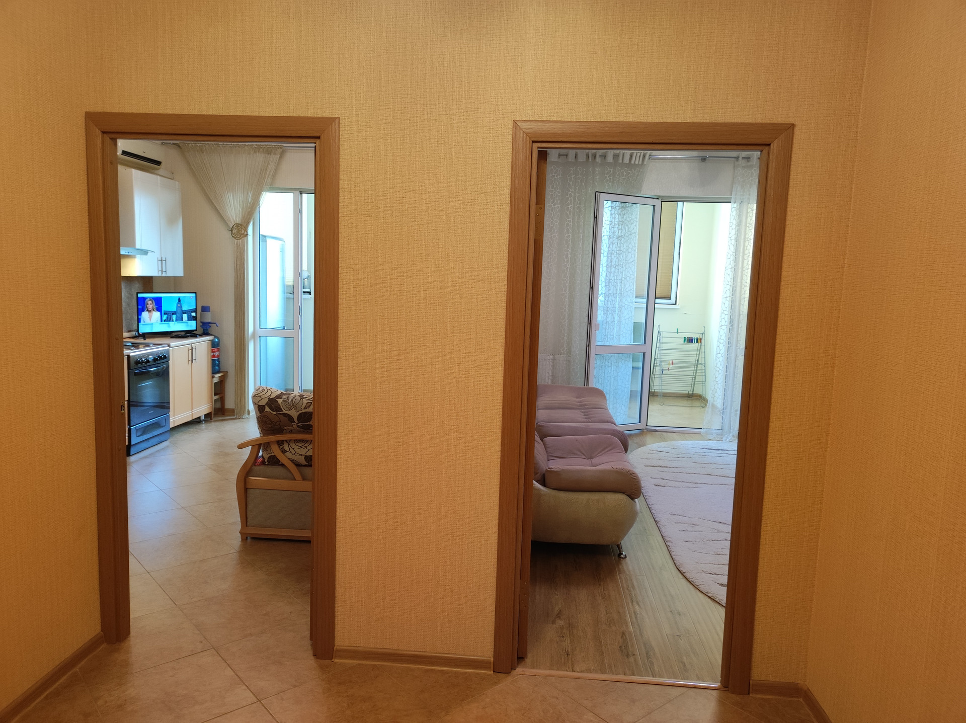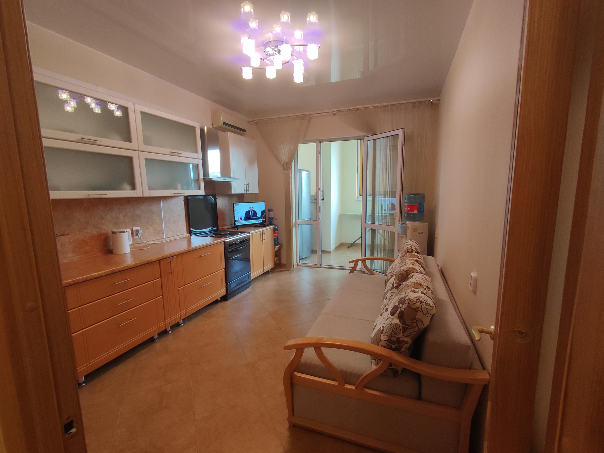 В квартире есть гардеробная, санузел совмещённый, балкон 12 м2, ремонт. Вся мебель остаётся. В шаговой доступности школа, детский сад, магазины,остановка общественного транспорта. До моря 15 минут идти, на машине 5 минут.