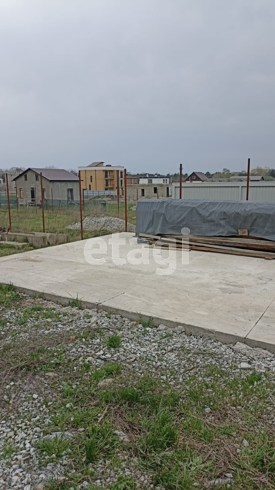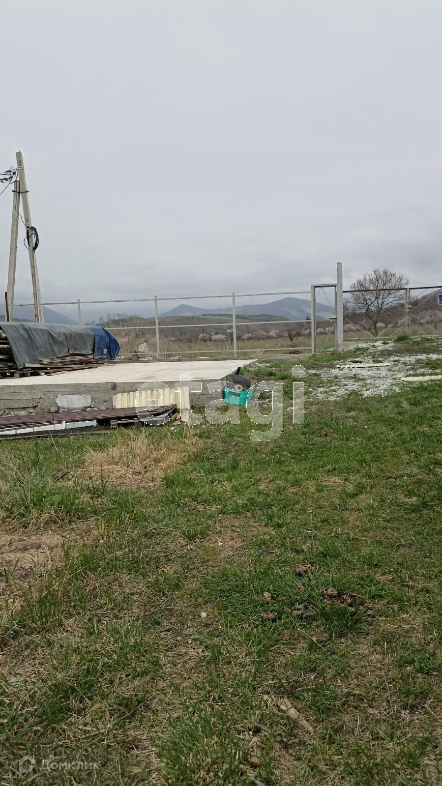 Участок высокий, ровный с забором и фундаментом. Есть скважина. Газ проходит по соседней улице. Столб с электричеством рядом с участком. Имеется разрешение на строительство.  Вид разрешенного использования: земли населенных пунктов (ИЖС). Вся инфраструктура рядом. В шаговой доступности школа, детский сад, магазины.