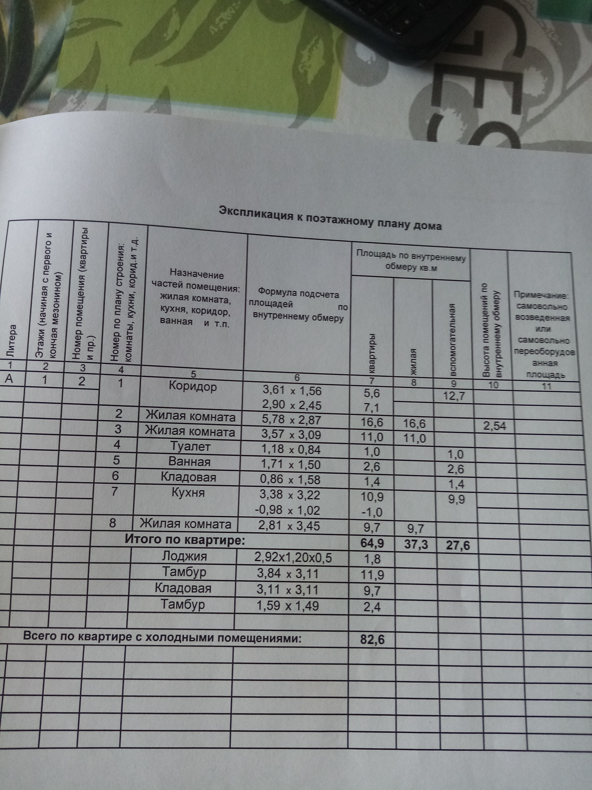 Общая площадь 64.9 м2
