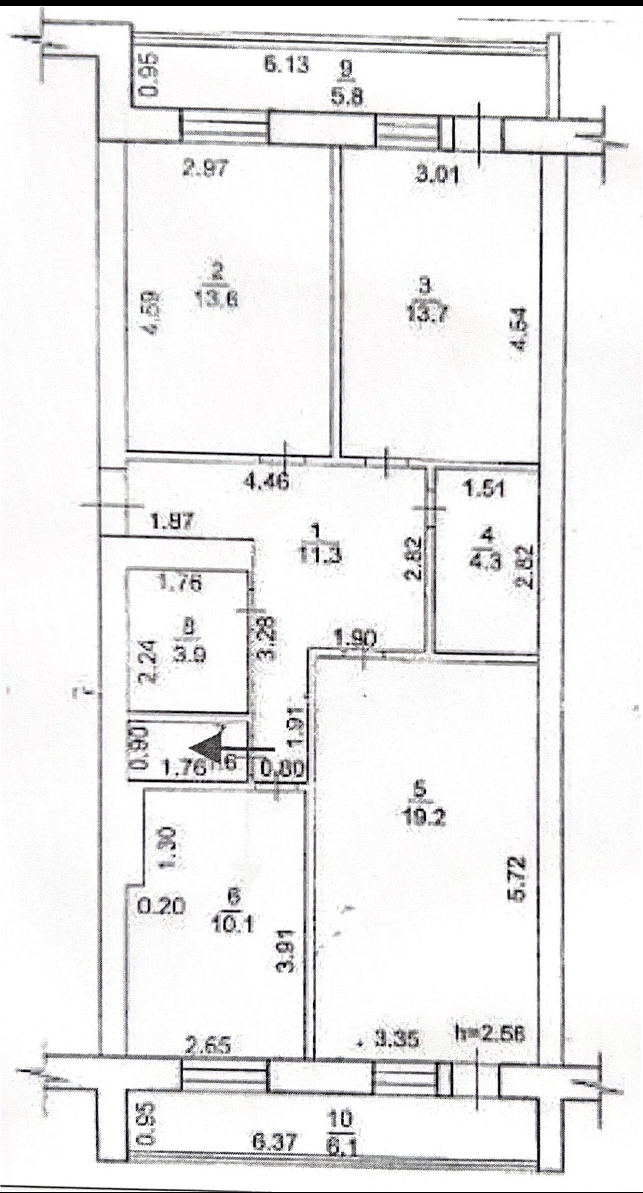 Высота потолков 2.56 м