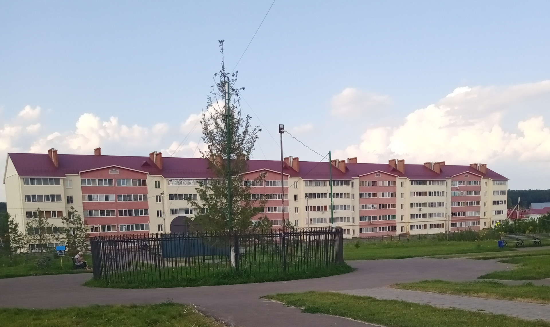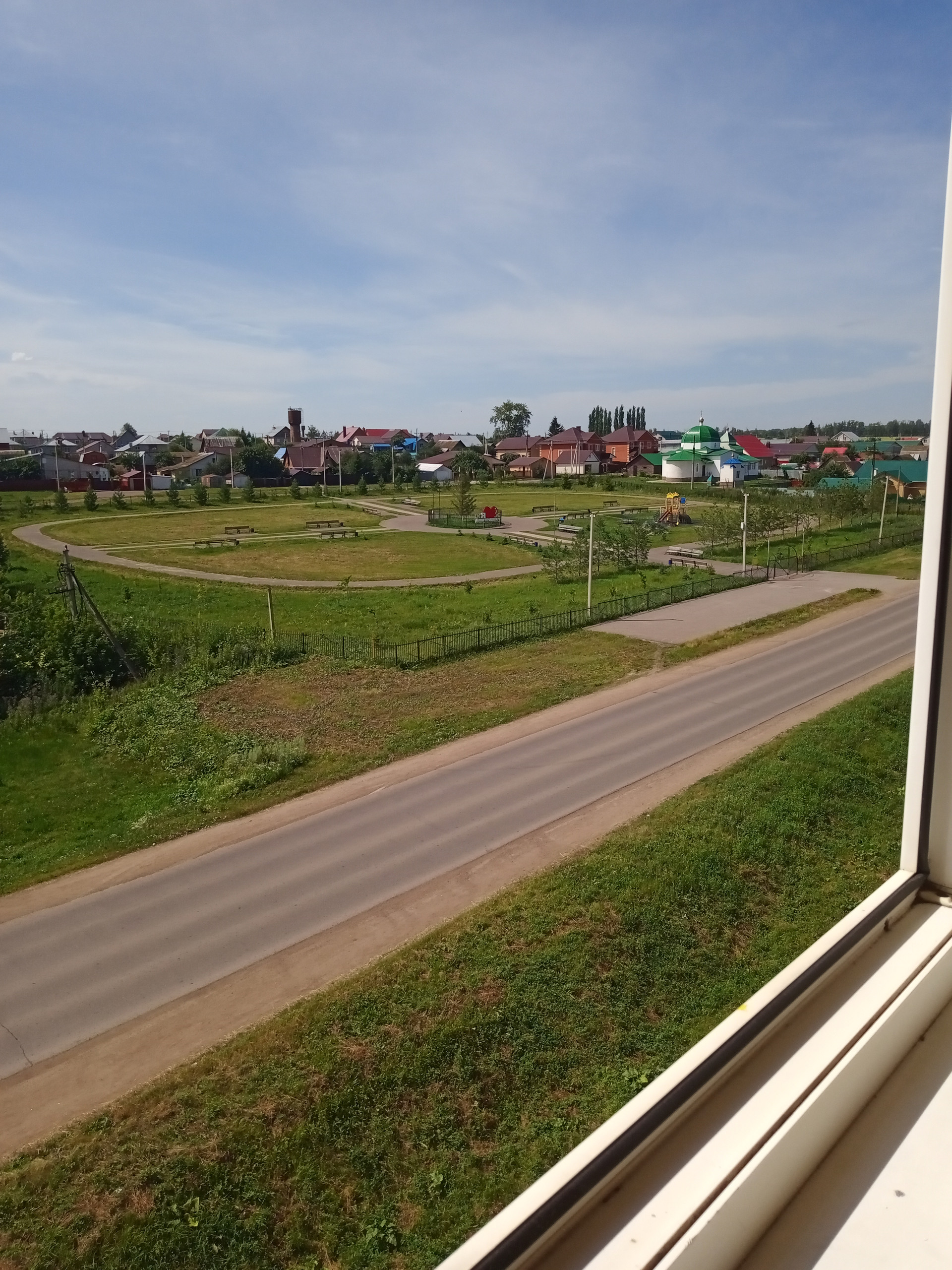 Вид на парк и церковь.Сам дом с пристроенным магазином Байрам.Остановка маршрута 391  и 108 -Больница.Напротив дома поликлиника,стационар,дет.сад и остановка.
