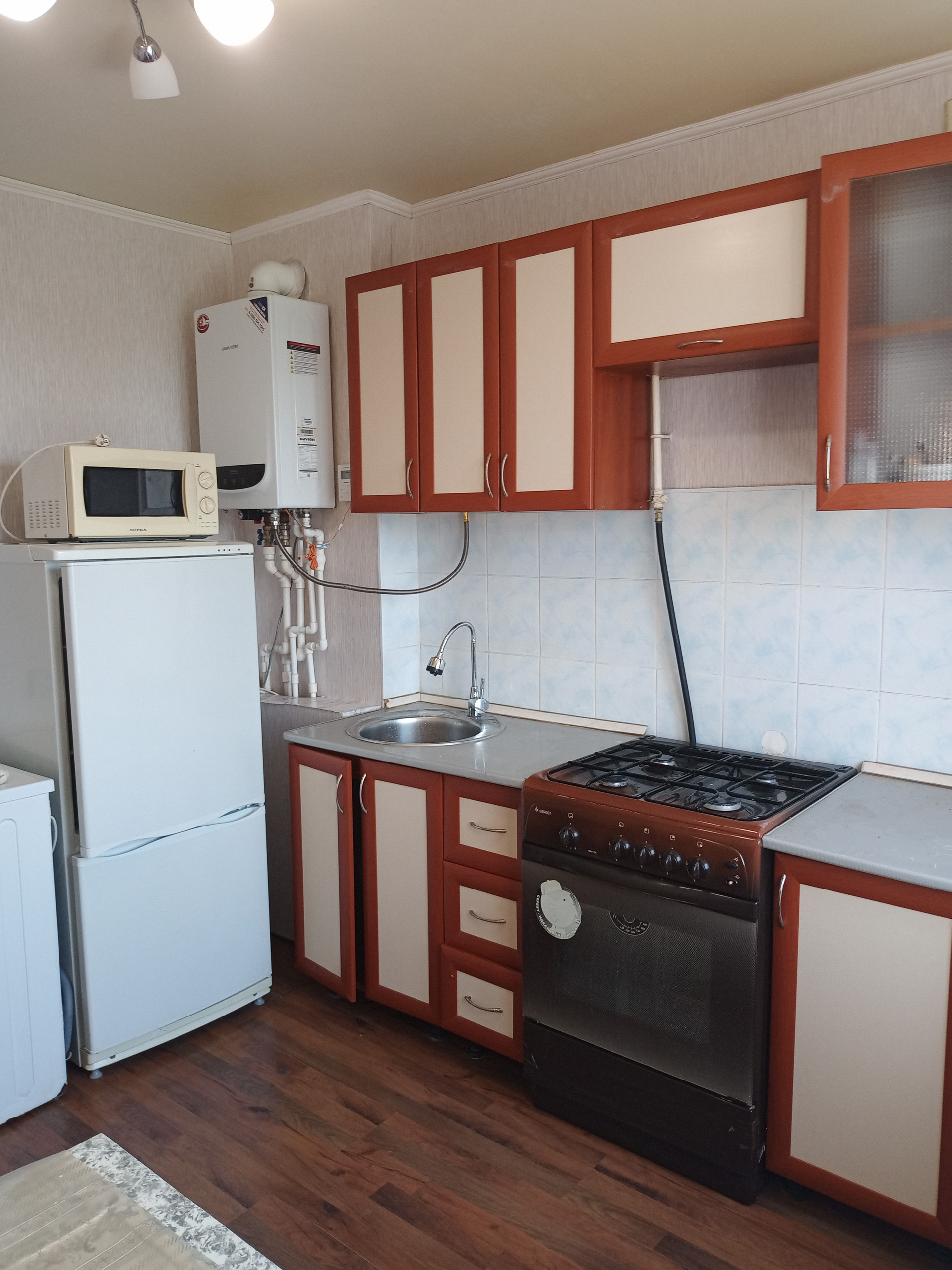 Встроенная кухня,диван и шкафы остаются.