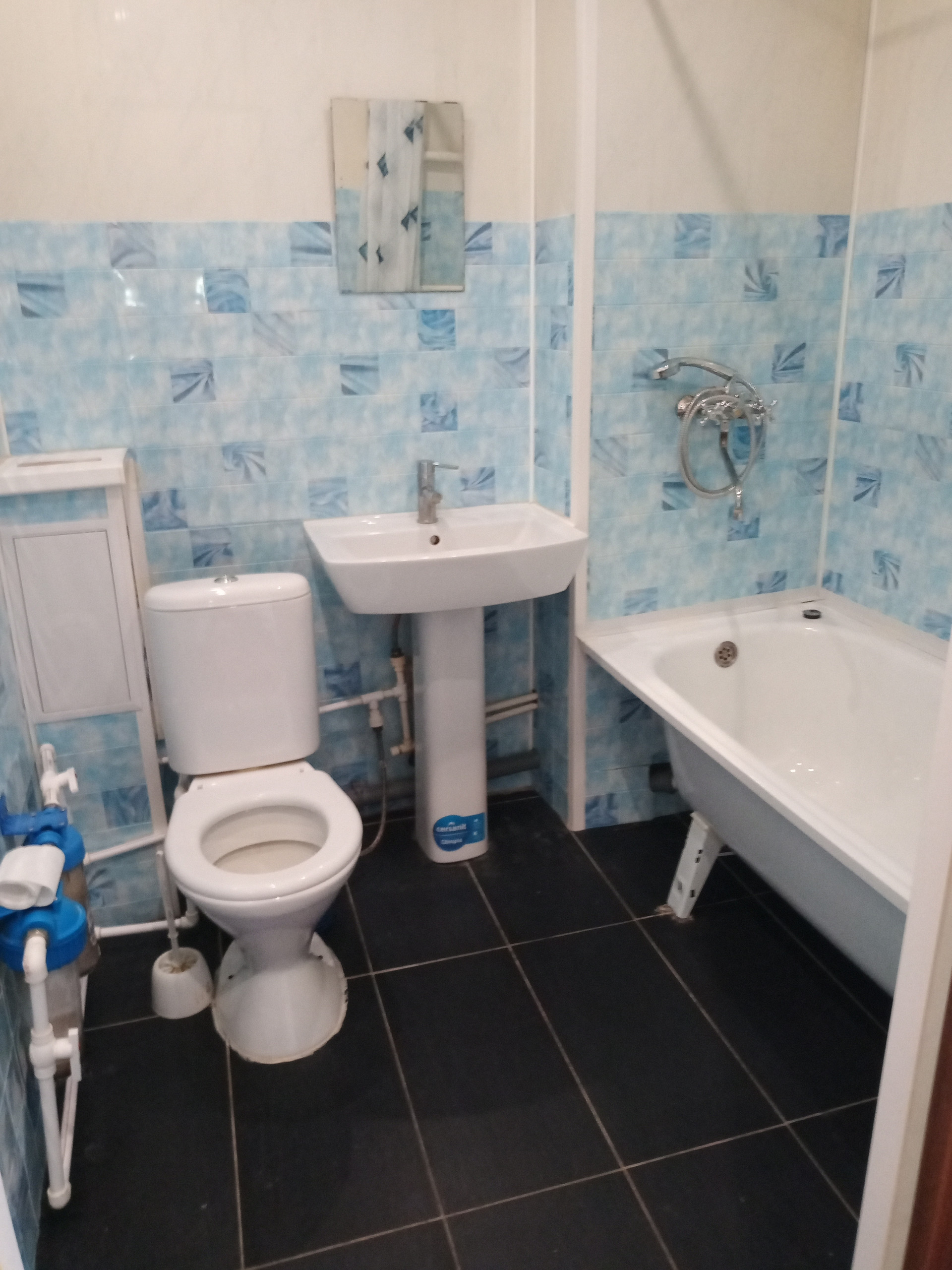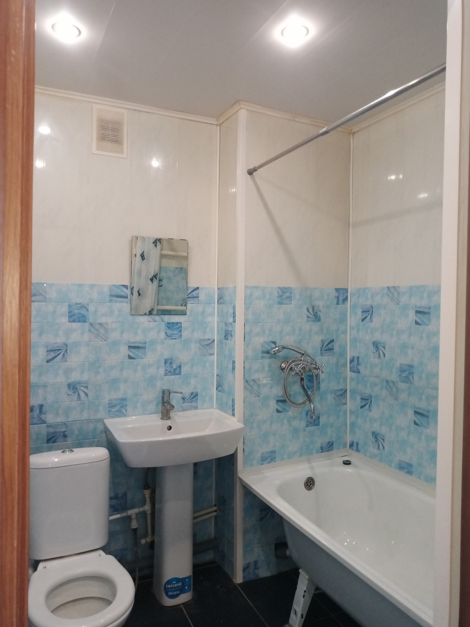 Санузел пластик.панели, пол-керамогранит.
