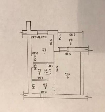 Высота потолков 2.53 м