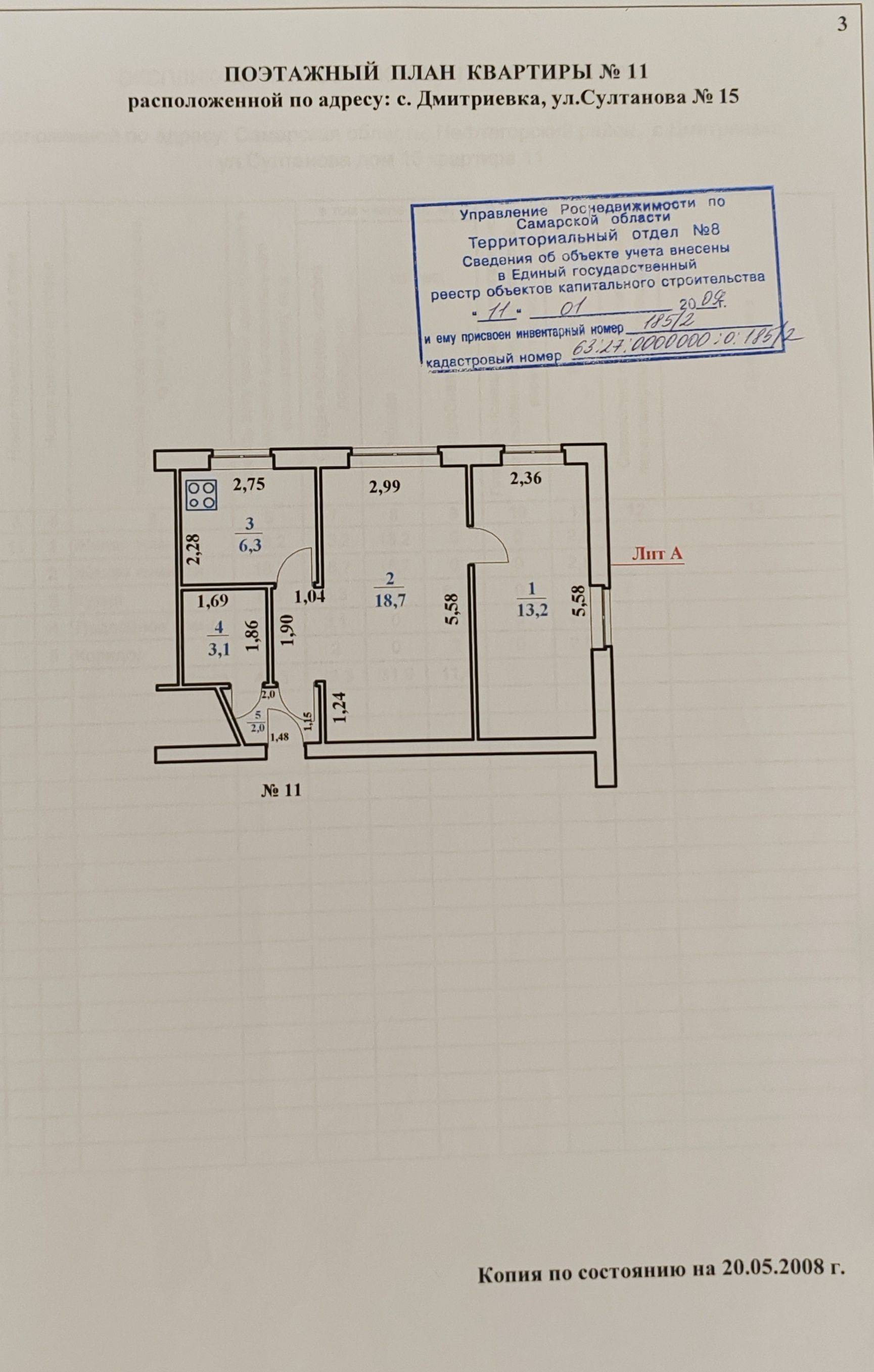 2-комнатная квартира, 43.3 м2, этаж 1 / 2, на продажу в селе Дмитриевка, улица Султанова, 15