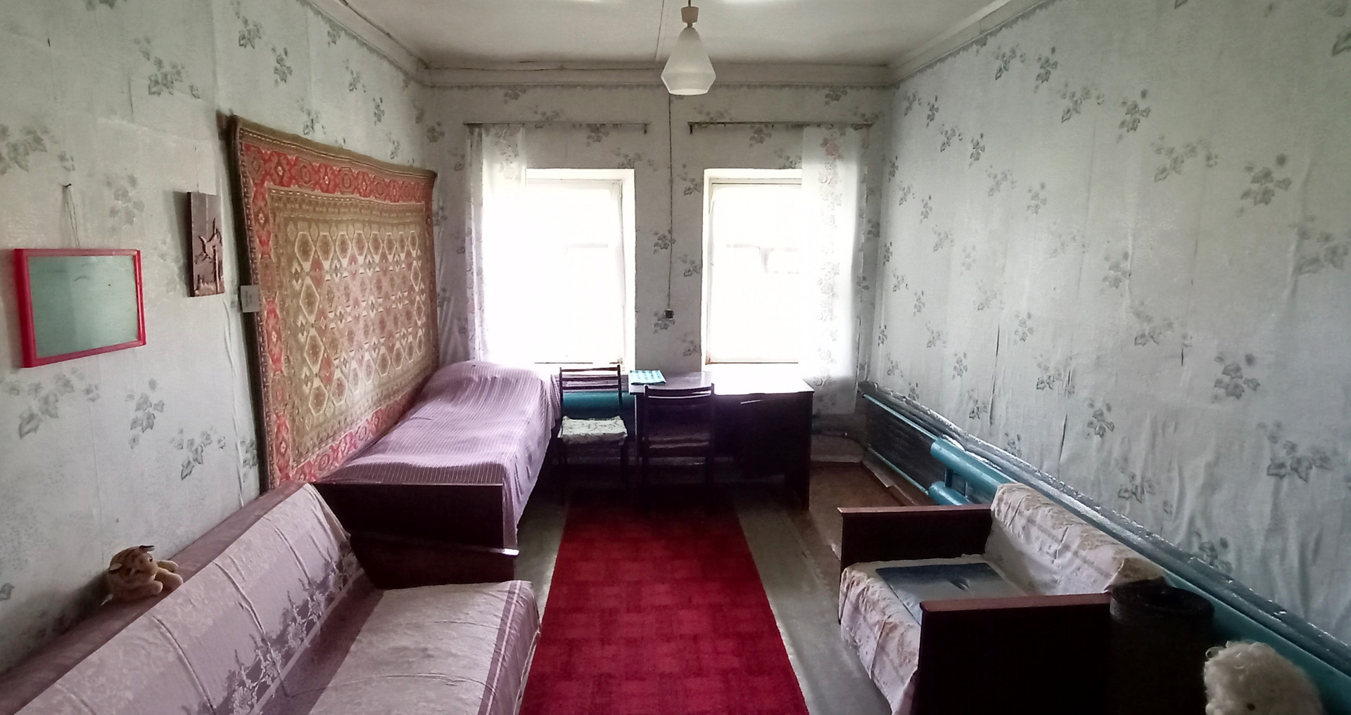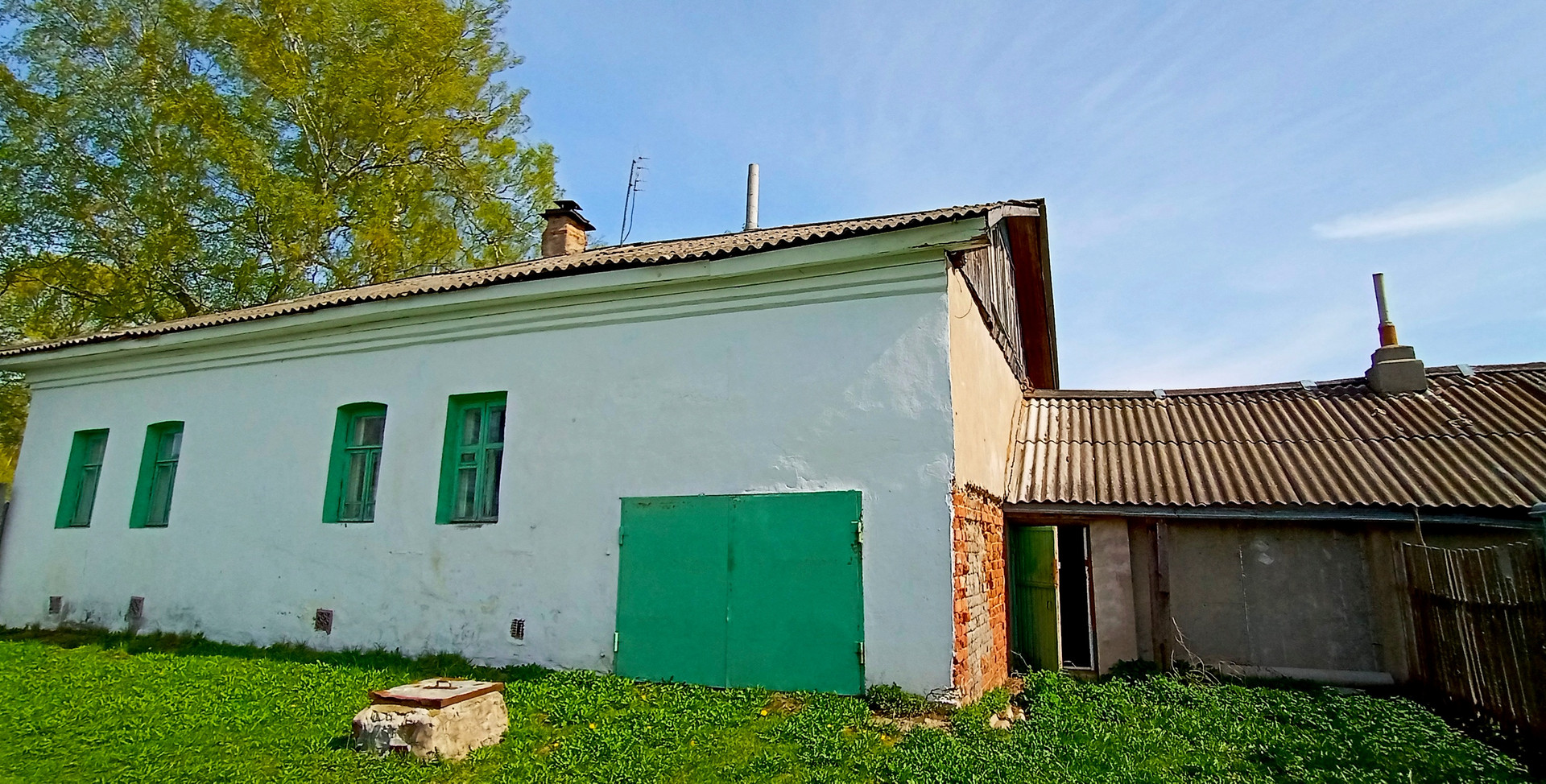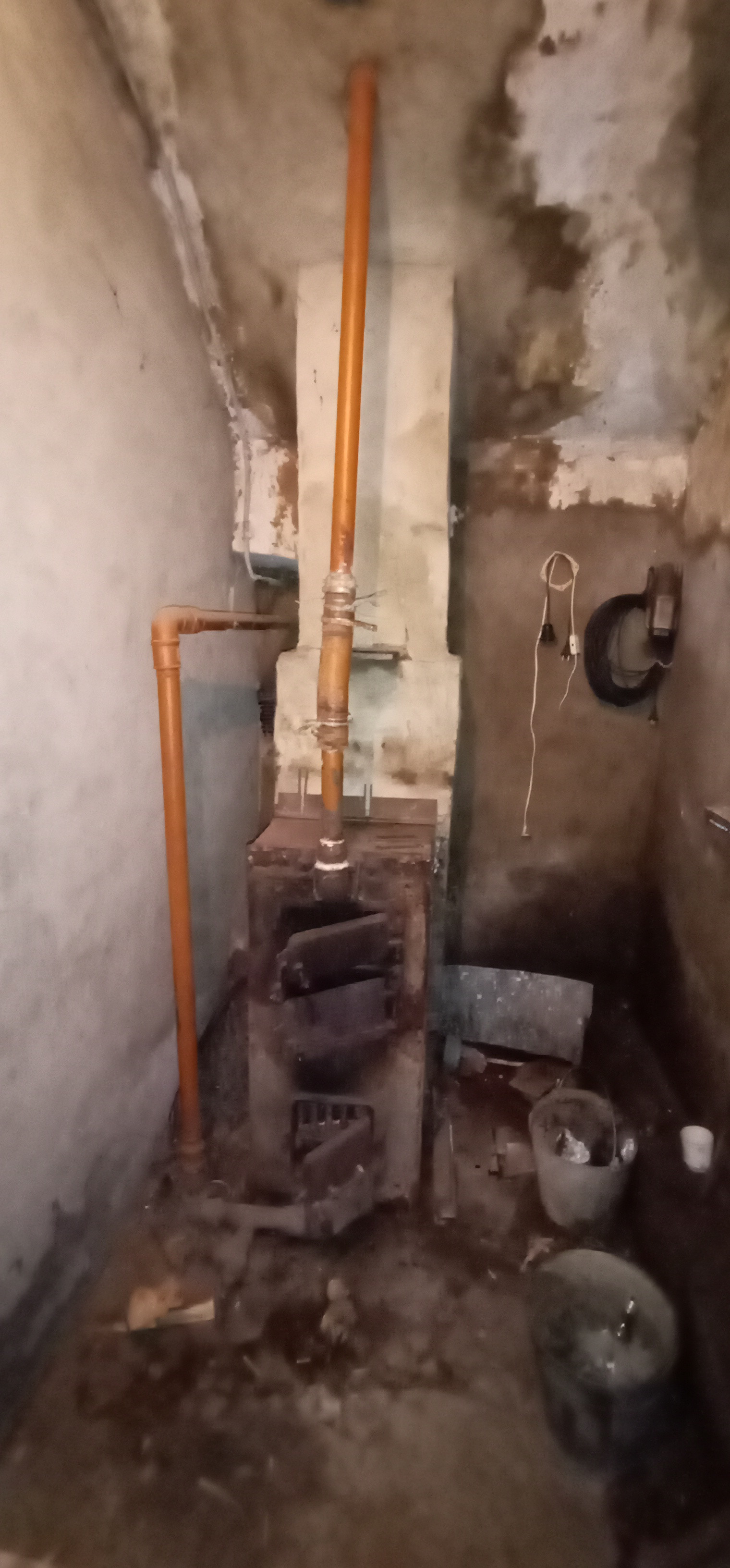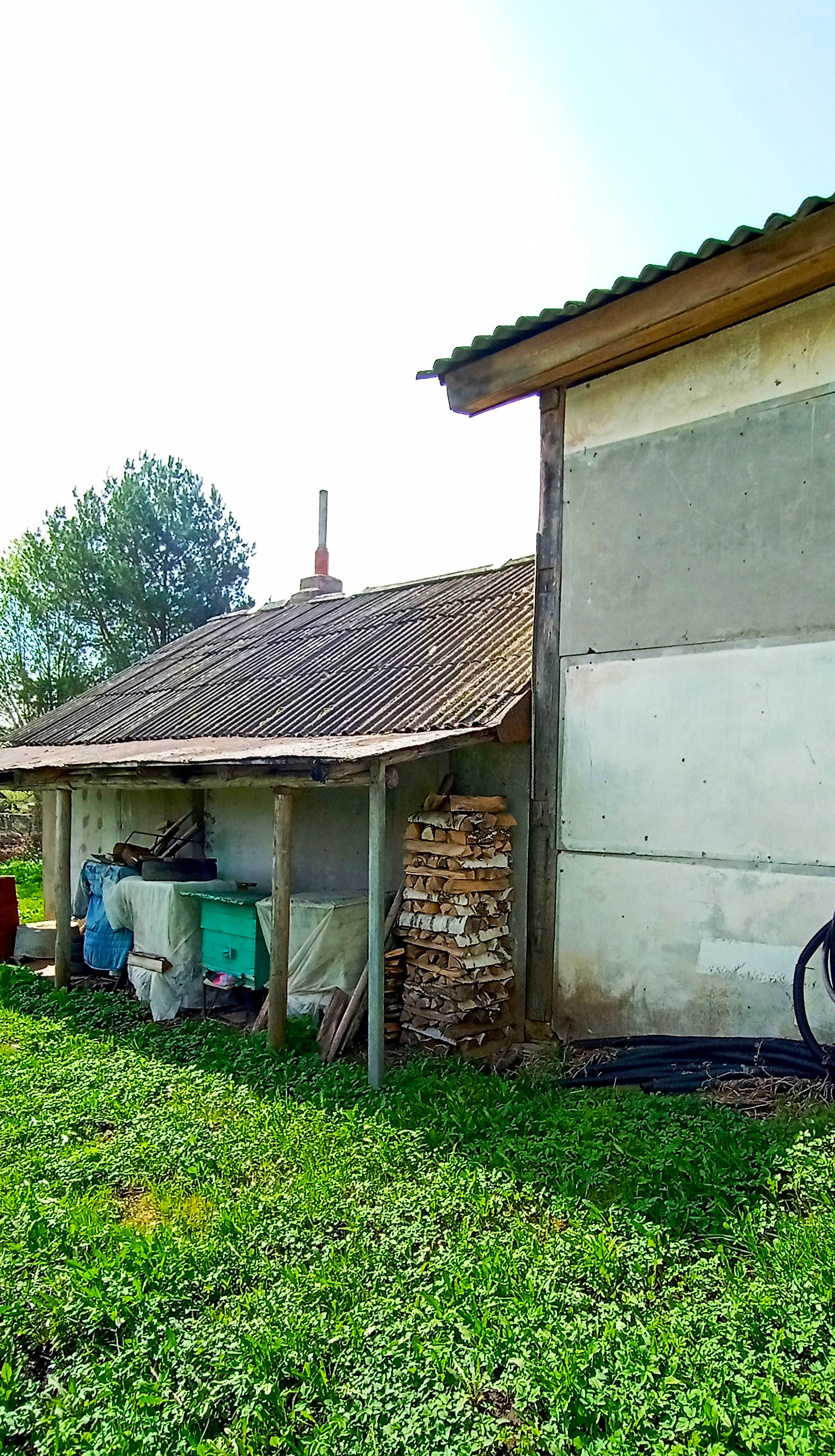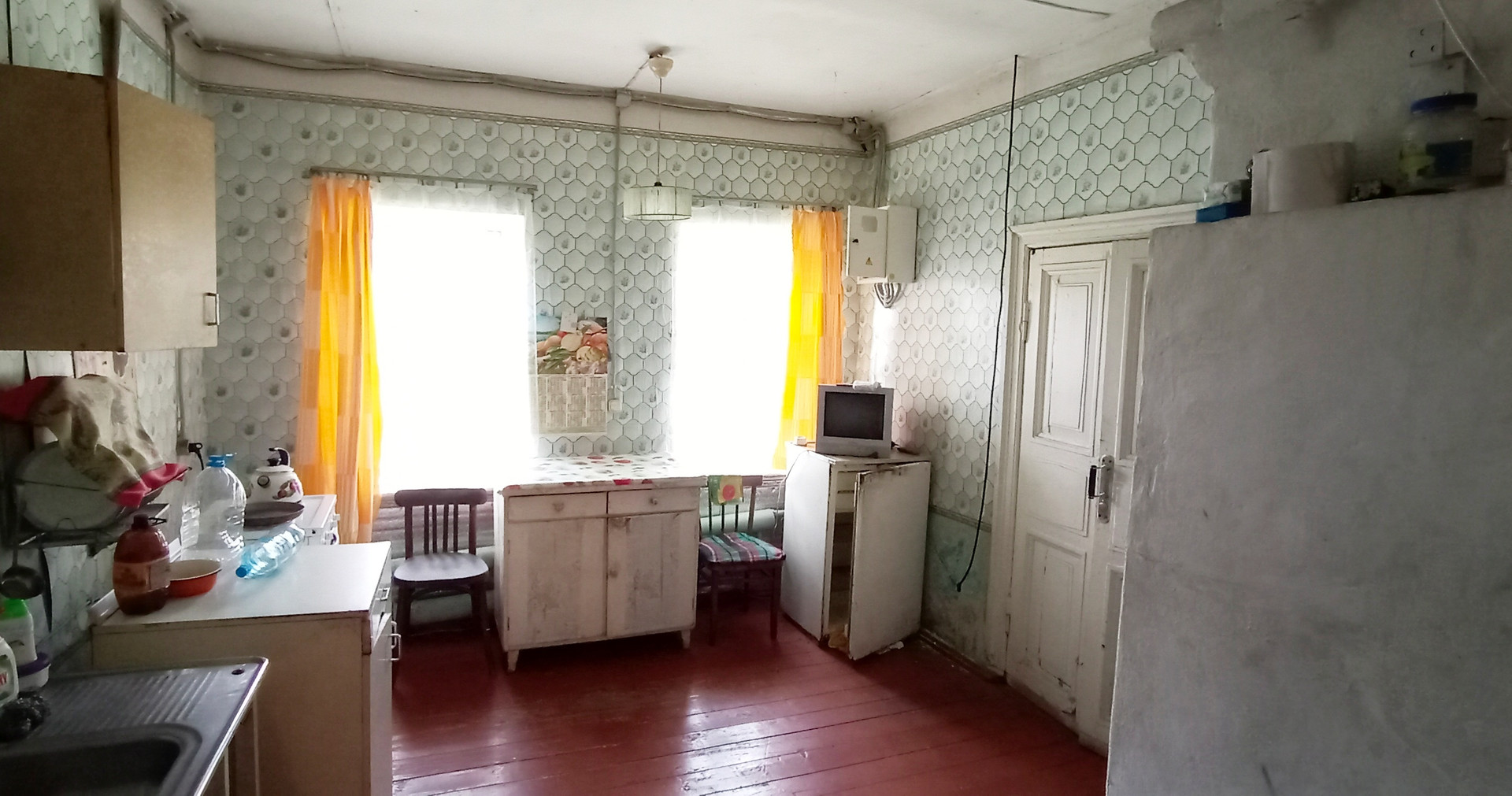 Отопление от водонагревательного твердотопливного котла, санузел в доме, выгребная яма, скважина во дворе, газовая труба в метре от дома.