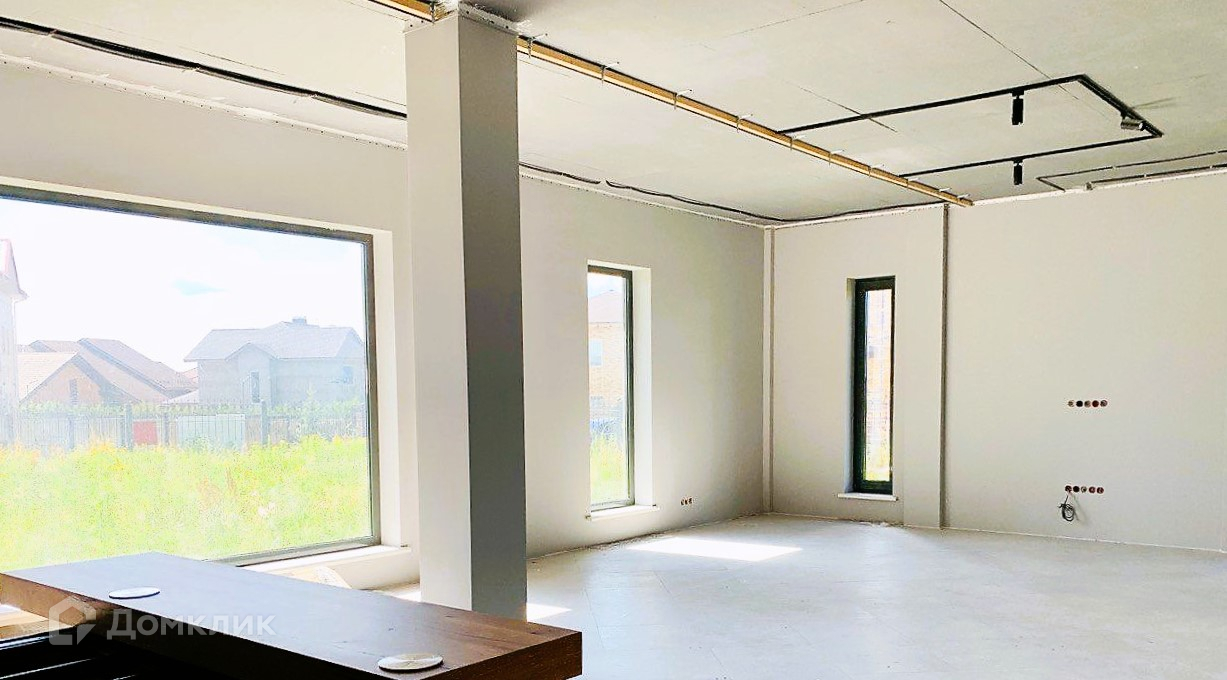 Первый этаж: кухня - столовая, большая гостиная с камином, бильярдная, холл, гардеробная, 2 санузла, кладовая, гараж и котельная. Второй этаж: кабинет, три спальни с отдельными санузлами и гардеробной. Одна спальня с выходом на террасу 42 кв. м. Участок ровный, без уклонов, правильной формы