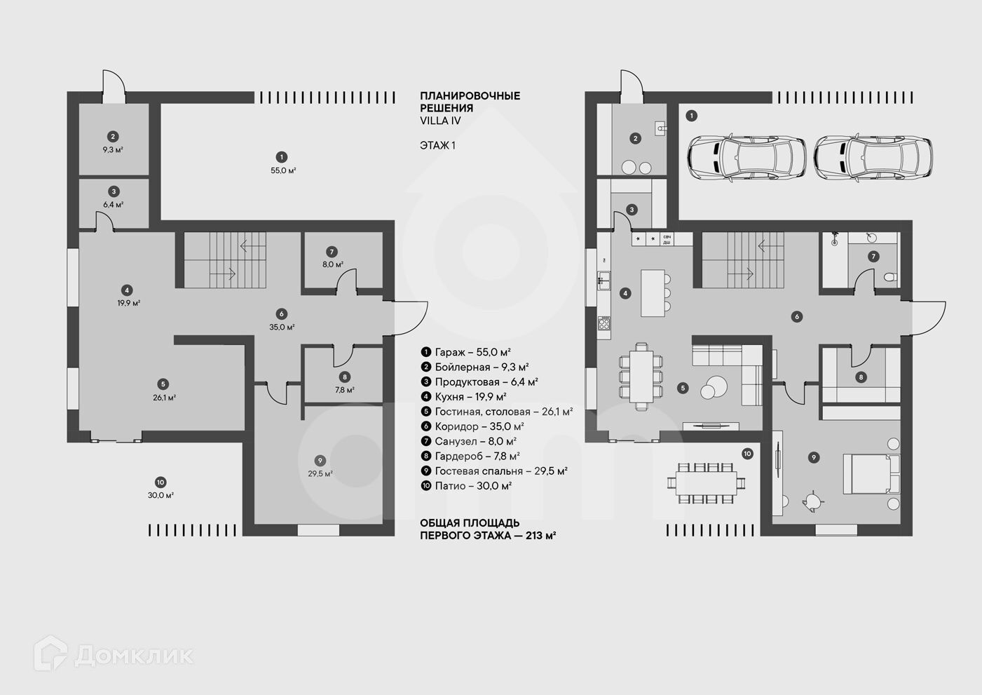 Отдельная приватная зона поселка. Дополнительное внутреннее КПП. Собственный подъезд и гостевая парковка.