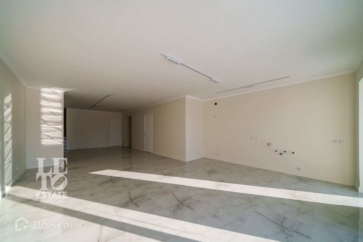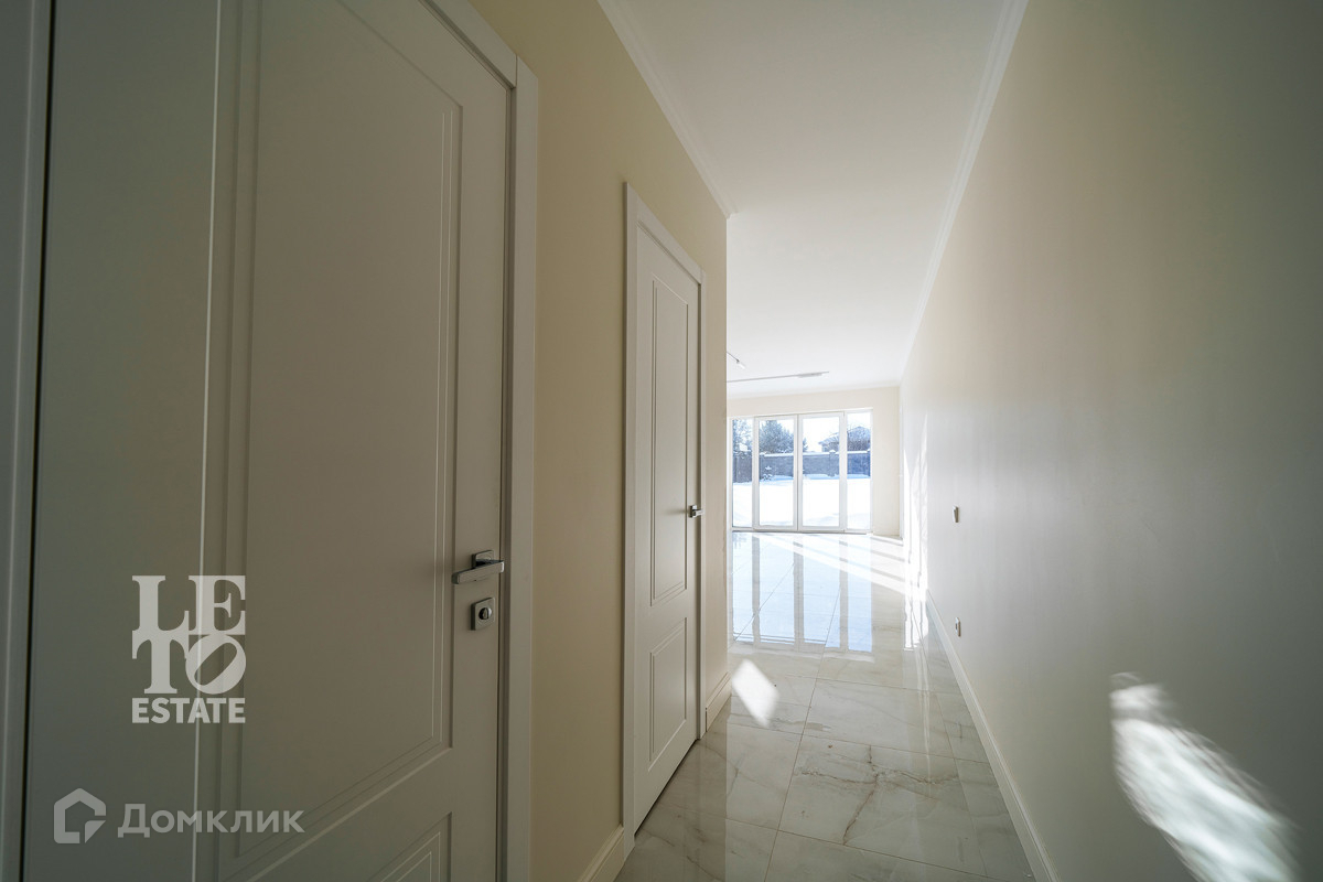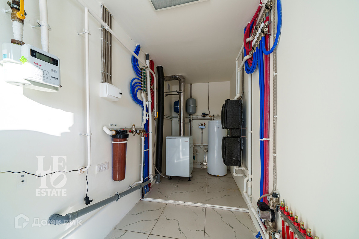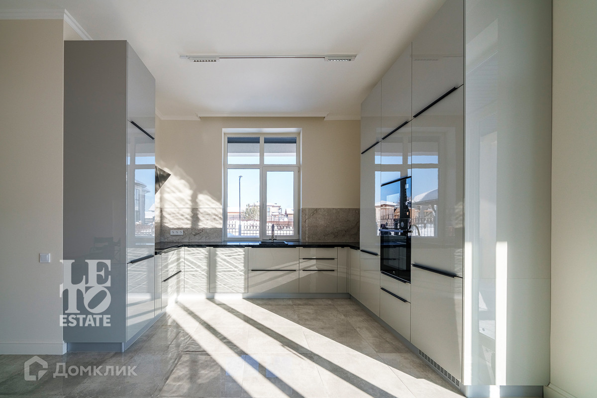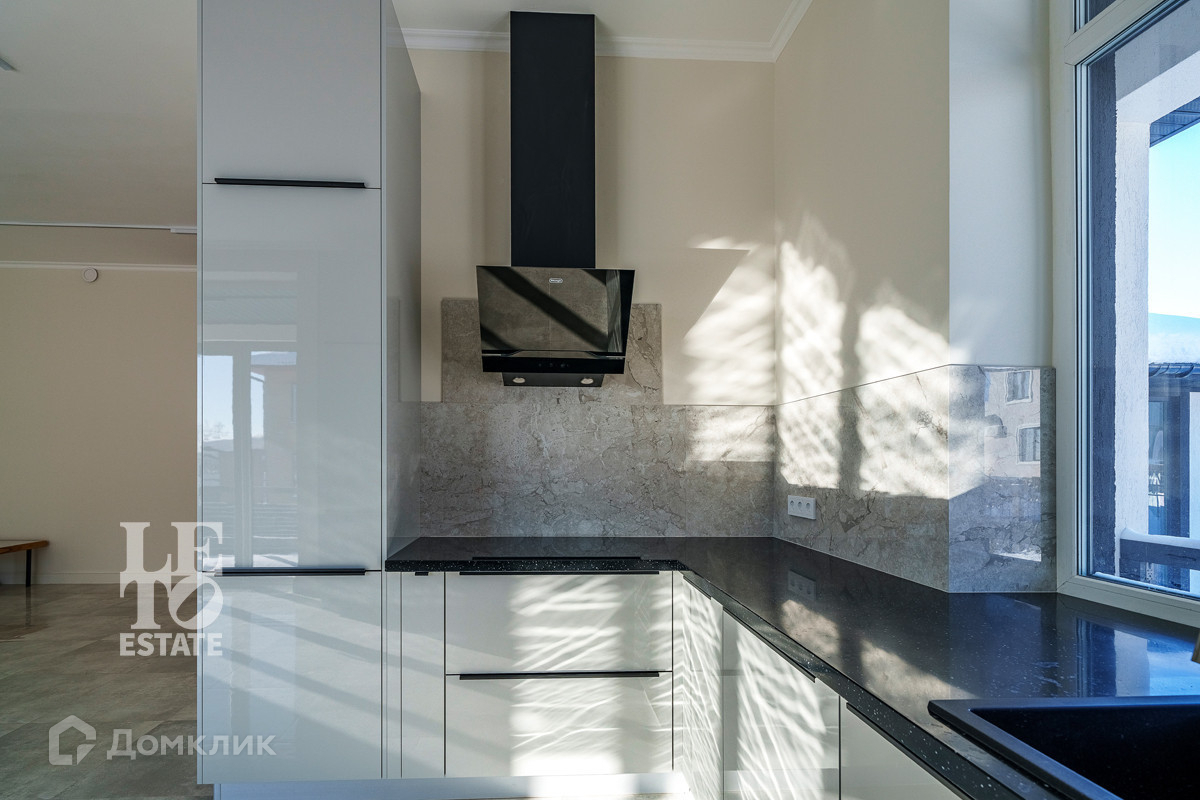 Использованы светлые тона в отделке дома, что дает ему еще больше пространства. Отделка выполнена из высококачественных материалов. Кухня оснащена всей необходимой встроенной техникой ведущих мировых производителей. По всему дому разведены теплые полы от фирмы Stout, под окнами встроены конвекторы. Установлена система приточно-вытяжной вентиляции. В дом заведены и разведены все центральные коммуникации: газ, электричество, водопровод, канализация. Дополнительно к дому пристроена открытая терраса. Приятным дополнением является наличие сауны.