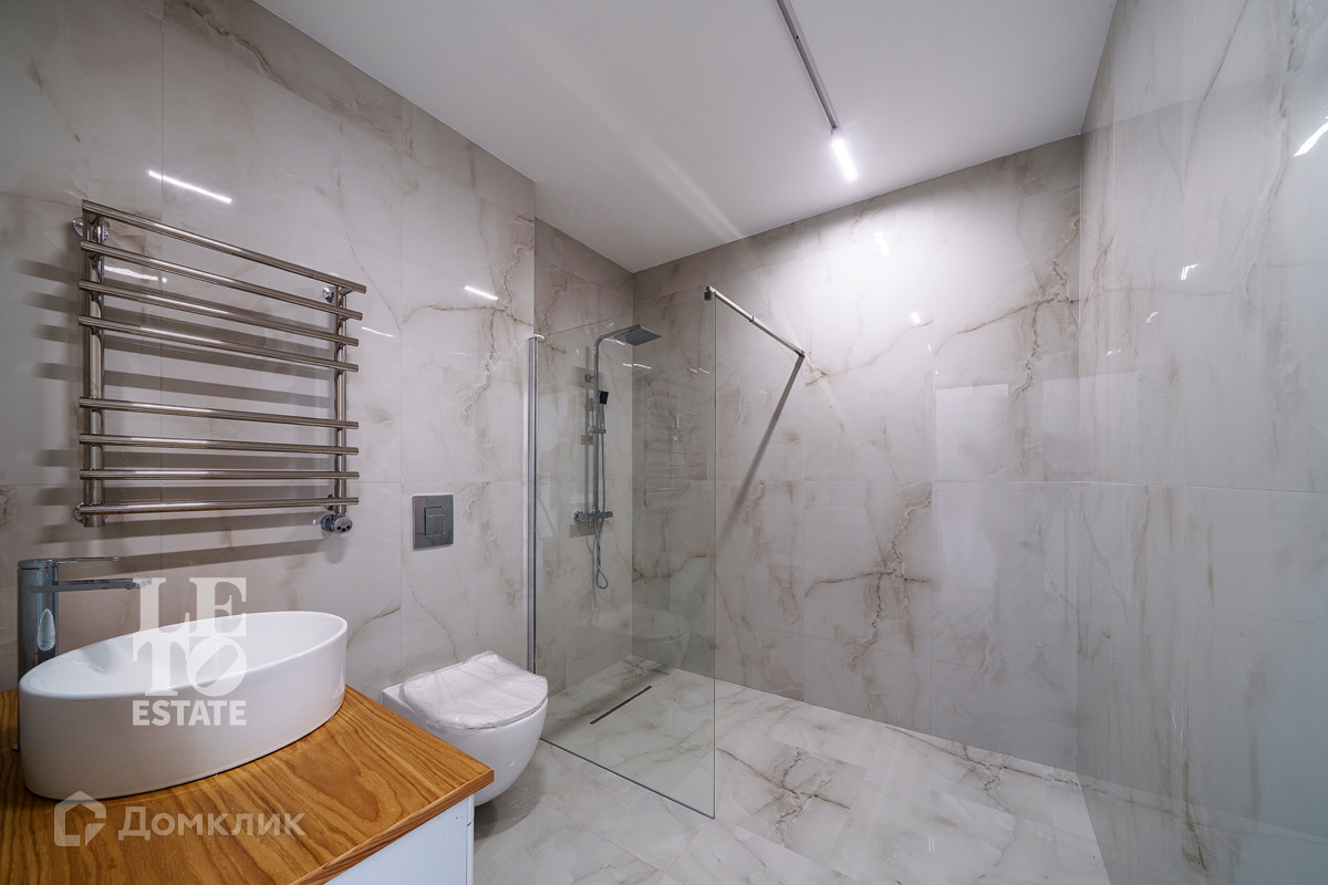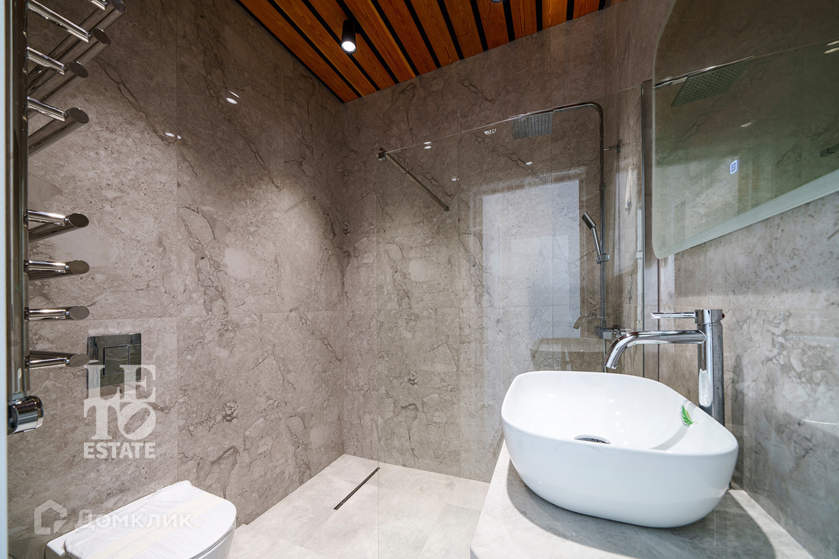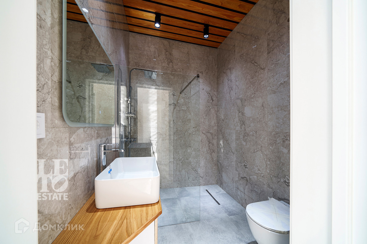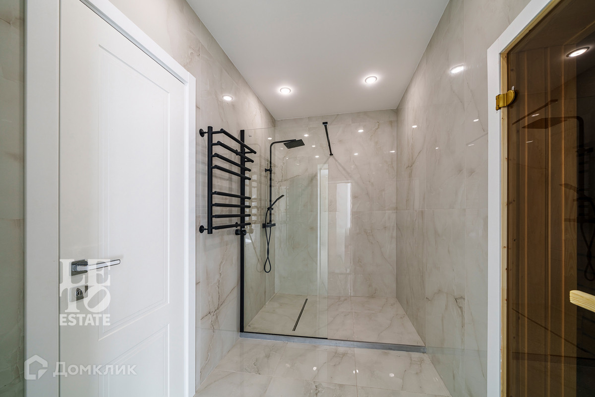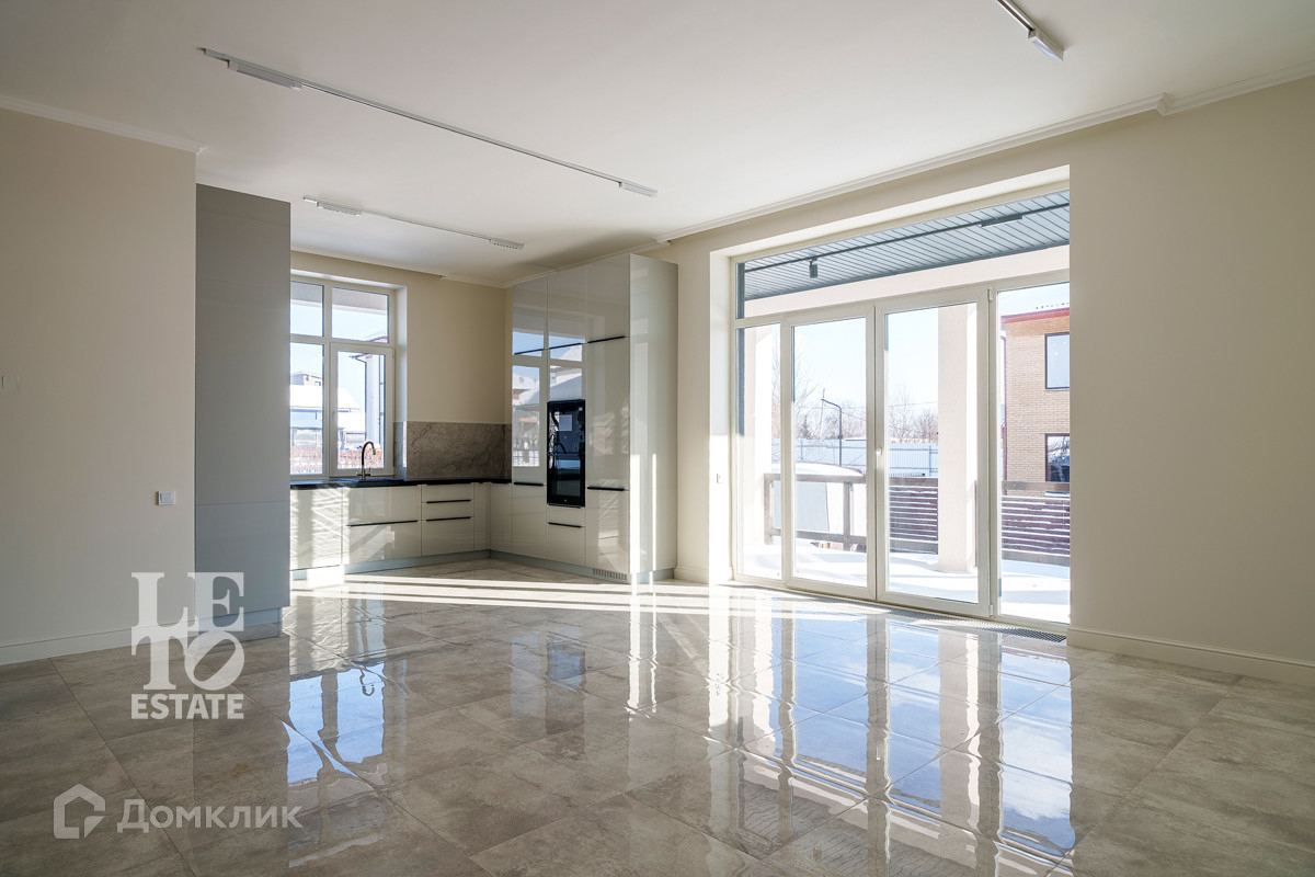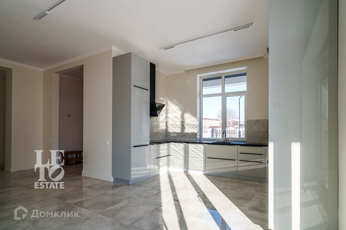 Использованы светлые тона в отделке дома, что дает ему еще больше пространства. Отделка выполнена из высококачественных материалов. Кухня оснащена всей необходимой встроенной техникой ведущих мировых производителей. По всему дому разведены теплые полы от фирмы Stout, под окнами встроены конвекторы. Установлена система приточно-вытяжной вентиляции. В дом заведены и разведены все центральные коммуникации: газ, электричество, водопровод, канализация. Дополнительно к дому пристроена открытая терраса. Приятным дополнением является наличие сауны.