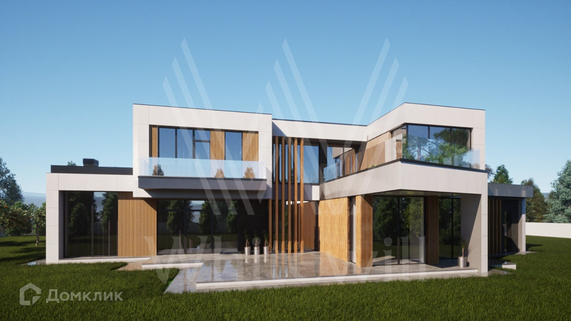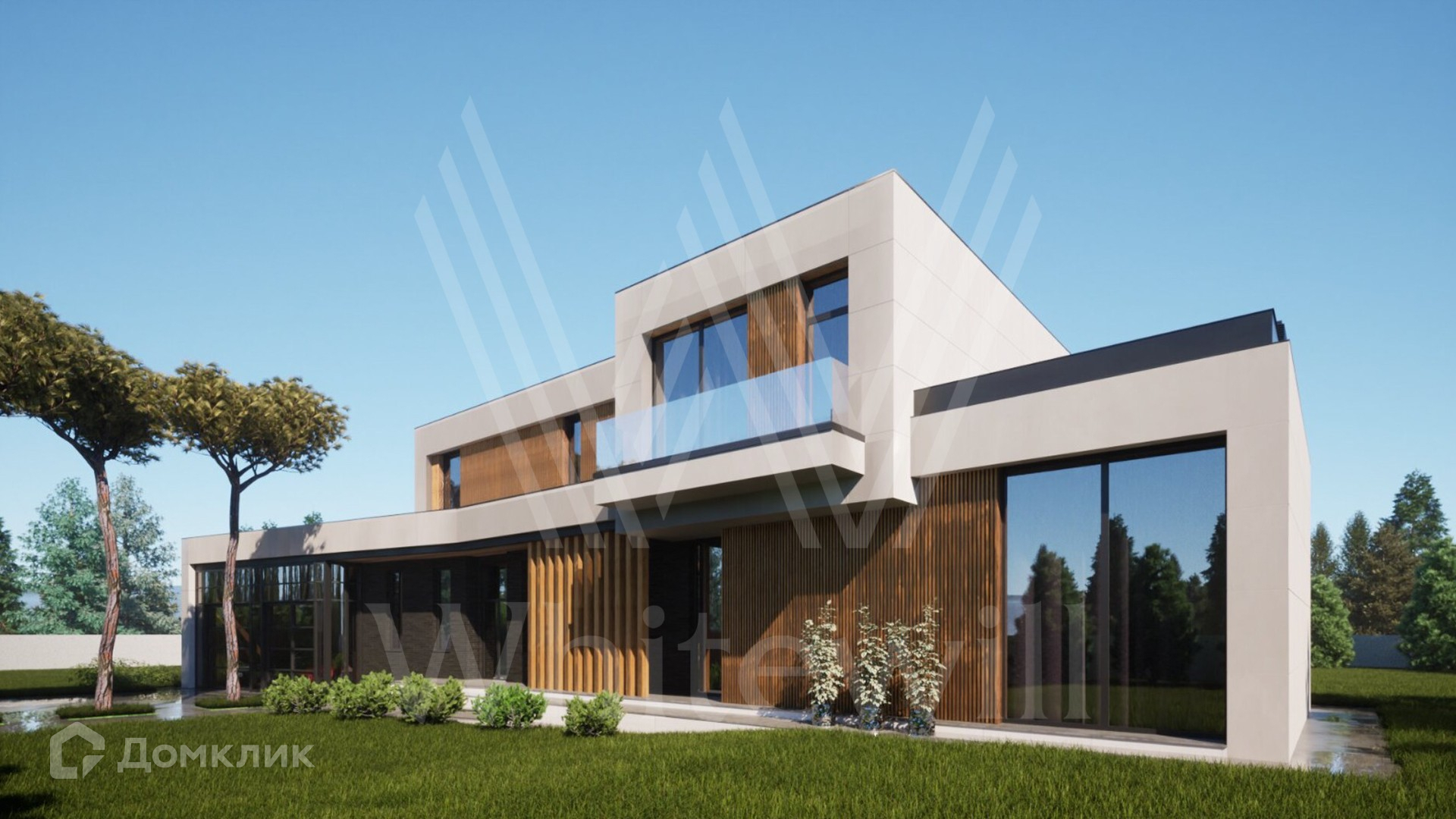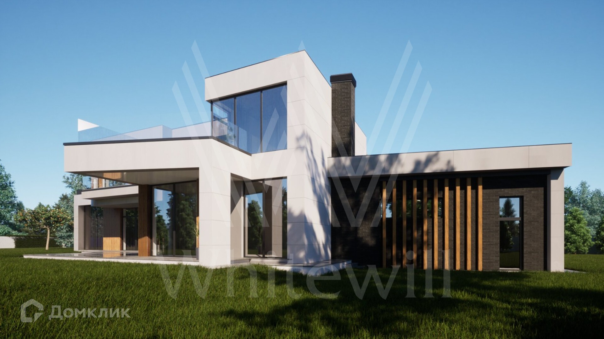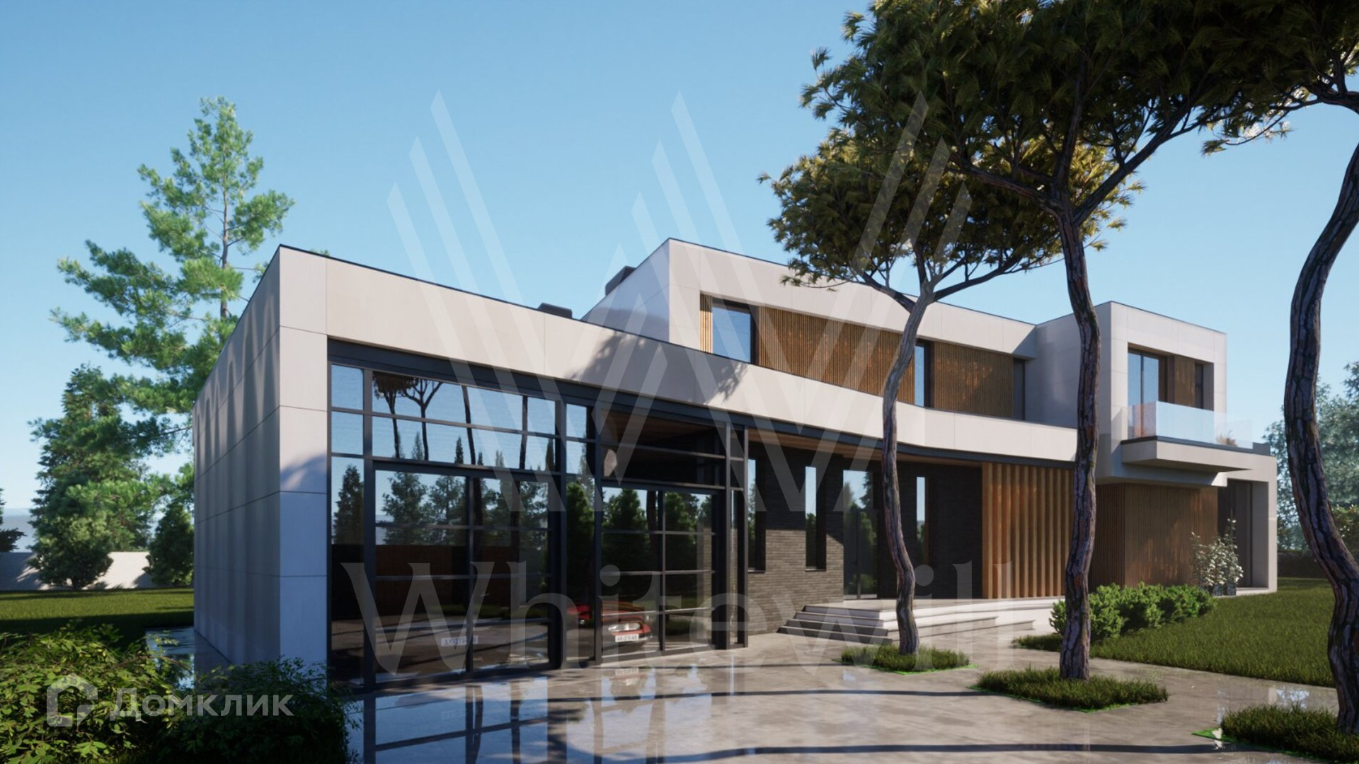 ID 12 874. Райт Хиллс. Загородная резиденция в современном стиле площадью 580 м² расположена на участке 22 сотки. Архитектура здания напоминает работы Ллойда Райта, известного американского архитектора XX века, создателя органической архитектуры. Фасад из светлых панелей, темного кирпича и текстуры дерева имеет большую площадь остекления и террас, благодаря которым можно наслаждаться каждым лучом солнца. Здание без отделки — можно спланировать кабинет, 4 спальни, включая мастер-спальню с приватными гардеробной и санузлом, просторную кухню, гостиную и столовую со вторым светом, а также сауну, хозяйственные помещения и навес для двух машин.