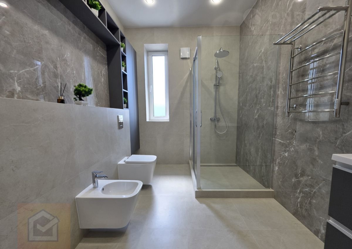В доме две спальни и одна мастер спальня со своей собственной гардеробной комнатой. В коридоре 2 больших шкафа-купе с подсветкой внутри. Два санузла.