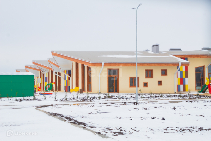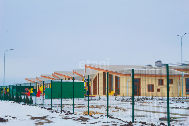 Дом находится в селе с развитой инфраструктурой: школа и детский сад в шаговой доступности( 5-7 минут, на фото видно), бассейн недалеко и магазин пятерочка.