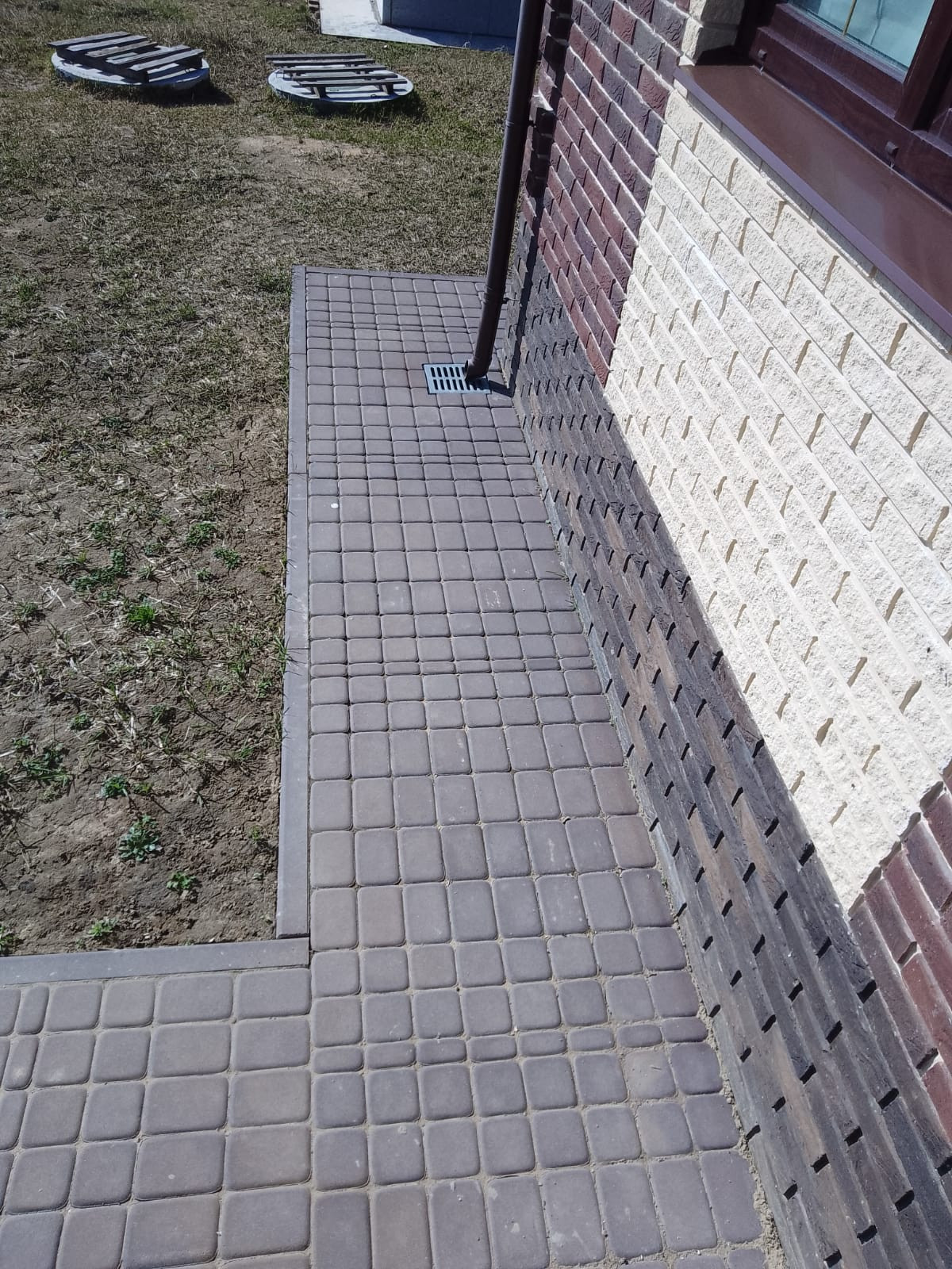 Вокруг дома отмостка. Вся электрика проведена под землей.