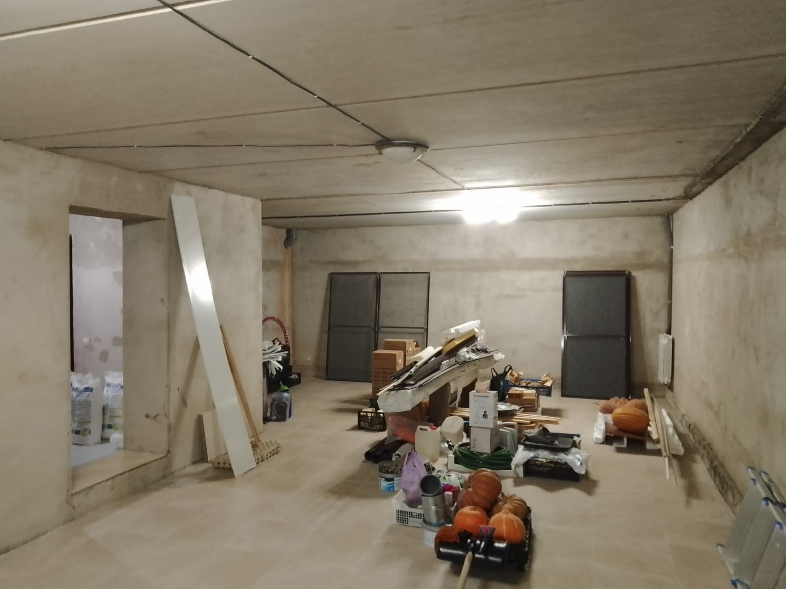 1 этаж кухня гостинная 40 м2, комната 12м2, санузел, бойлерная. Весь первый этаж теплые полы. Потолки 3м. В бойлерной 2 котла газовый и электрический.