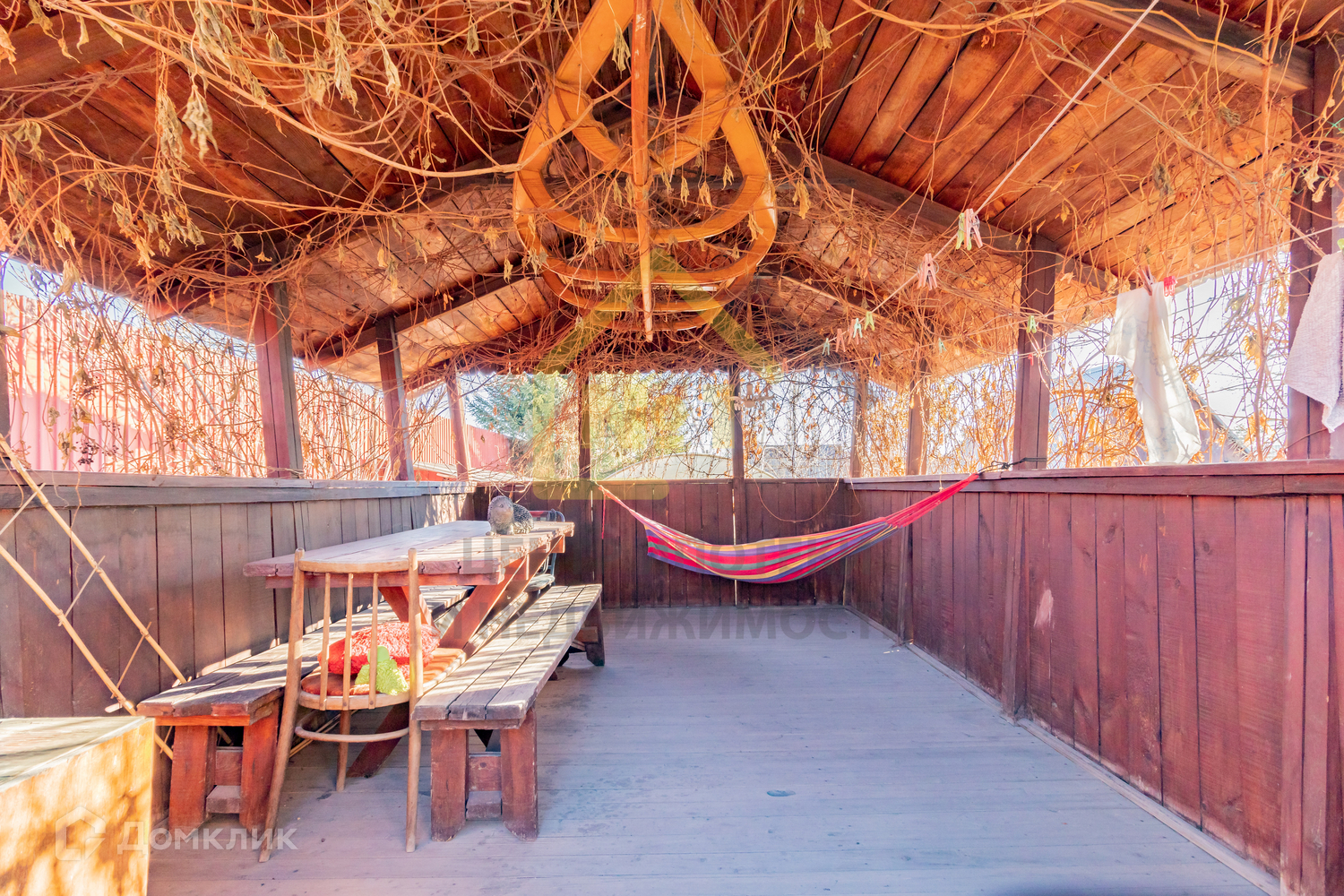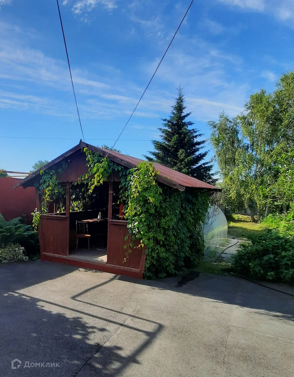 На участке навес, парковочные места на несколько машин.