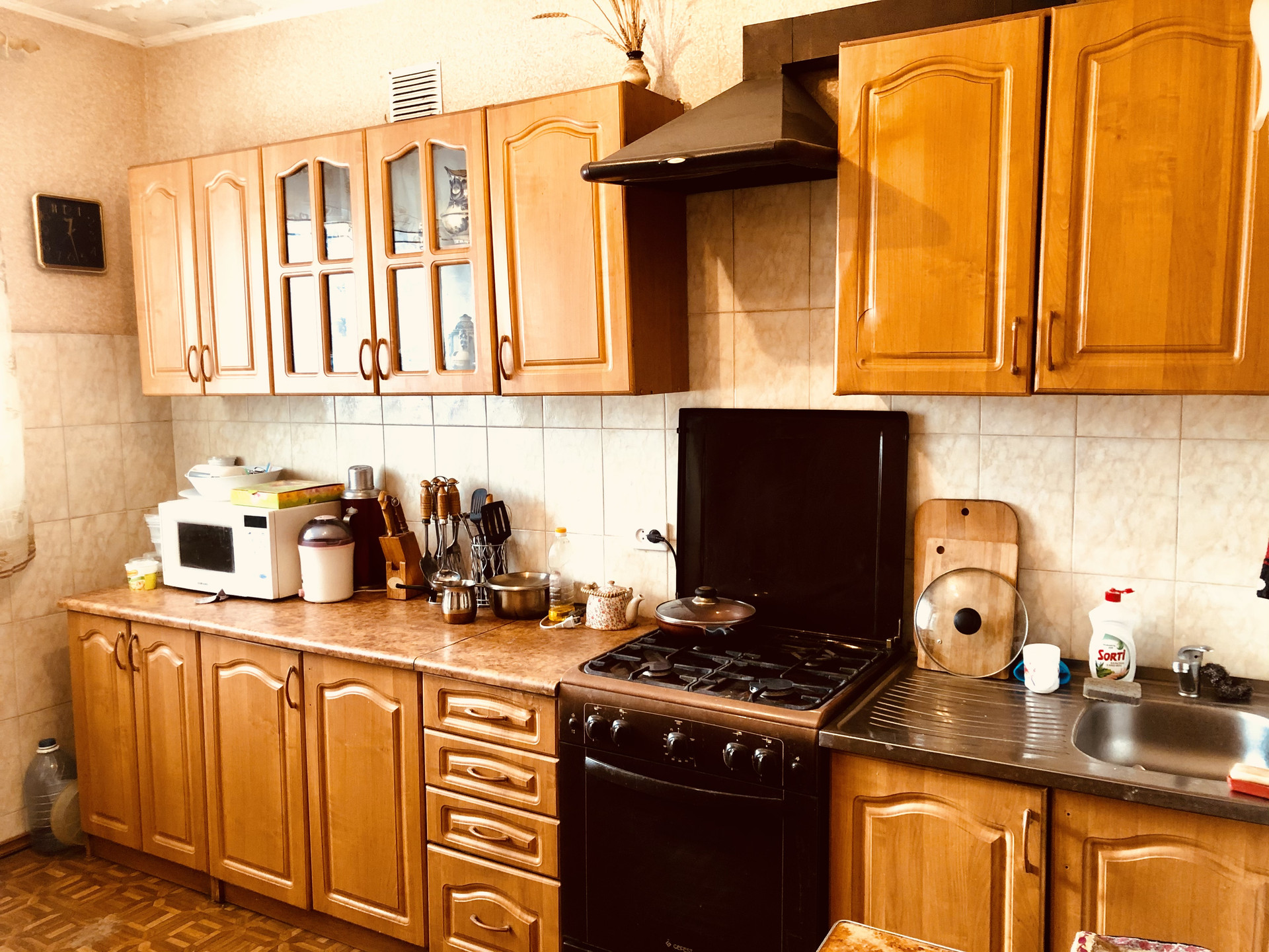 Квартира нестандартной планировки (объединены две двухкомнатные квартиры), перепланировка узаконена. Общая площадь 77 кв.м, просторный зал 23 кВ.м, кухня 12 кВ.м, большой коридор, есть кладовка, есть бытовая комната , где размещены стиральная машина и морозильная камера. Квартира в хорошем состоянии, е/окна, балкона нет, все комнаты раздельные, санузел раздельный . Чистая продажа. Оставляем всю мебель (по вашему желанию).